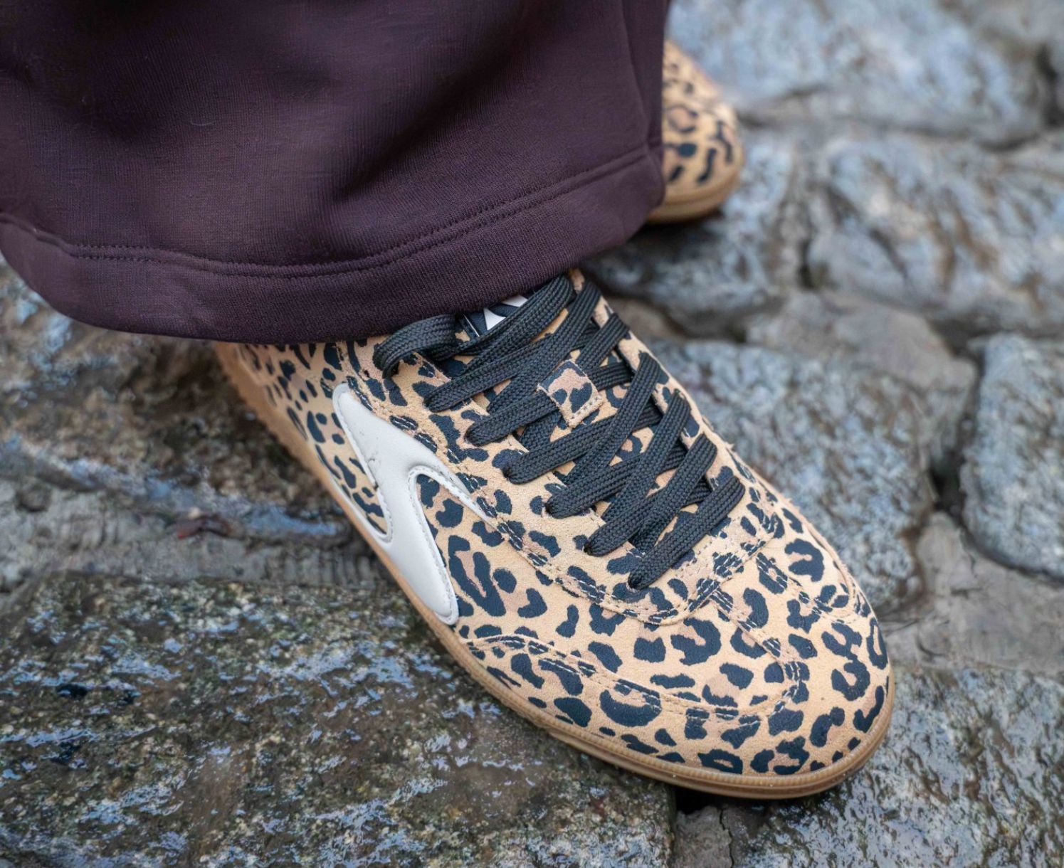 - Animal print suede and synthetic upper with lace-up front