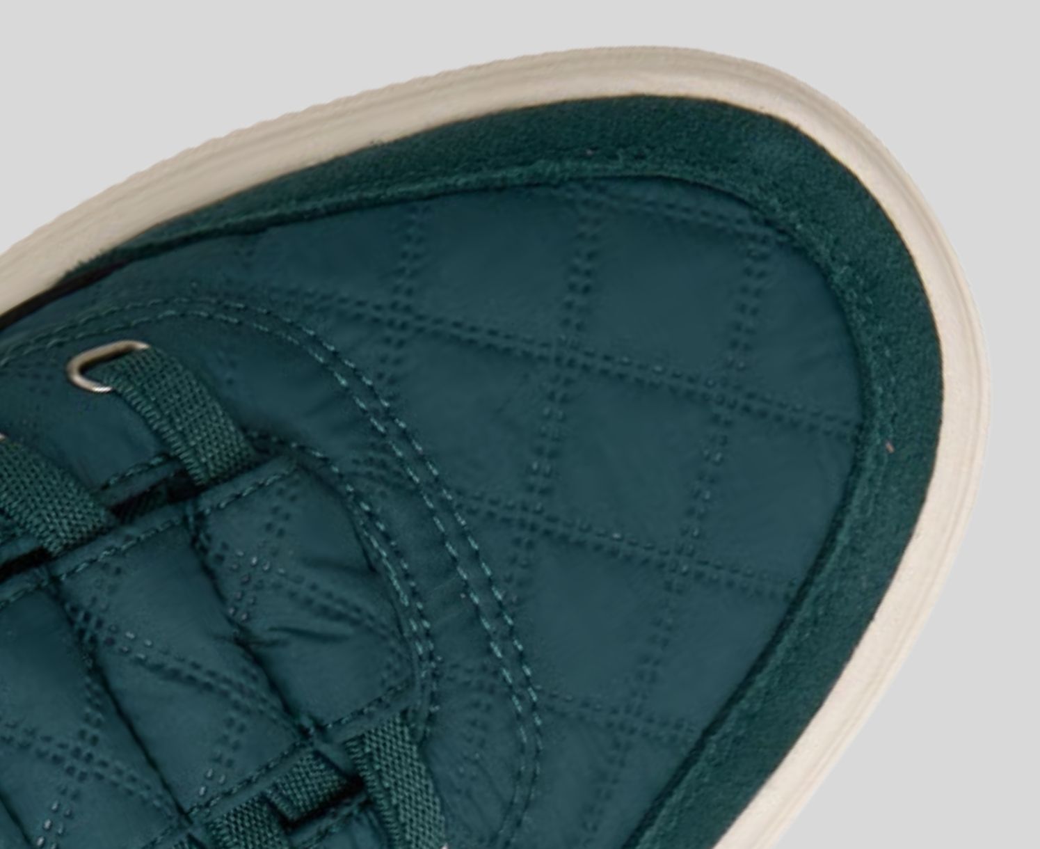 - Air-quilted nylon, duraleather, and suede overlay upper