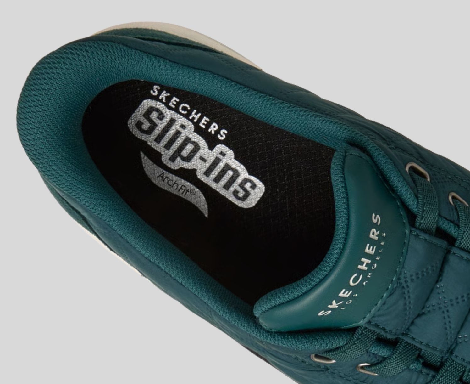 Skechers Cozy Fit® premium soft quilted materials wrap your feet in luxury, providing a cozy, natural fit for ultimate comfort.