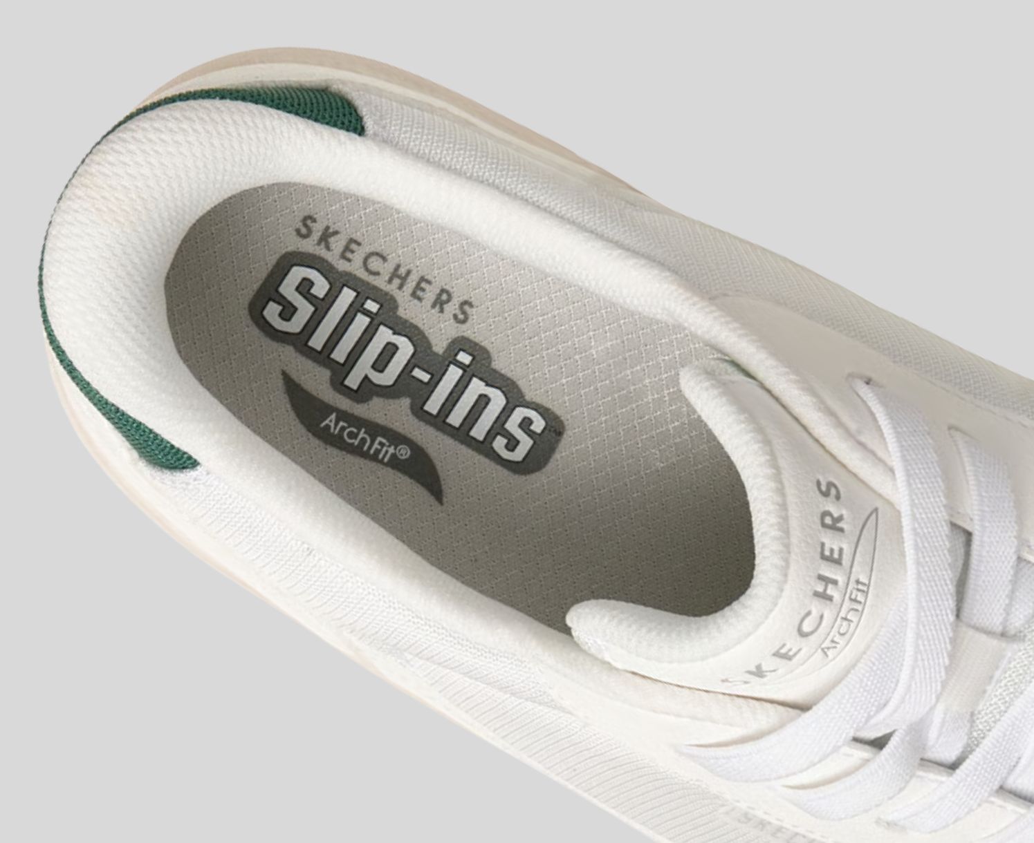 - Patented Skechers Arch Fit® insole system with podiatrist-certified arch support