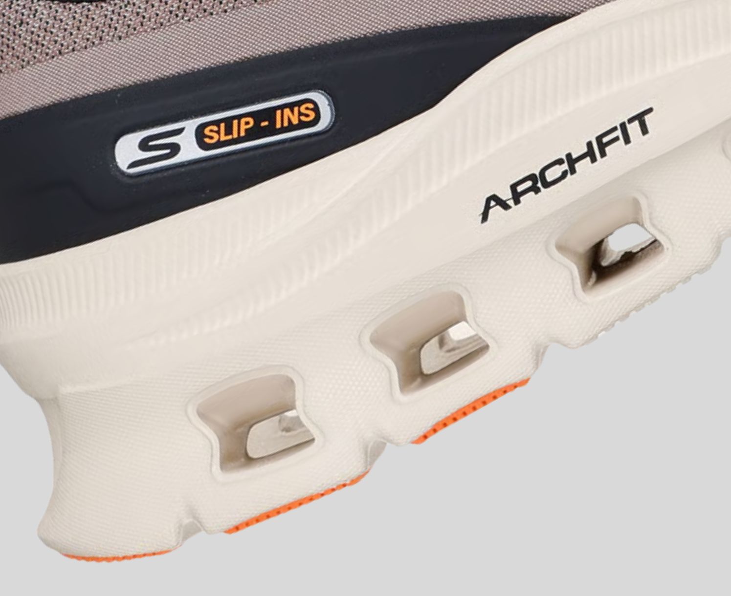- Patented Skechers Arch Fit® insole system with podiatrist-certified arch support, developed with 20 years of data and 120,000 unweighted foot scans