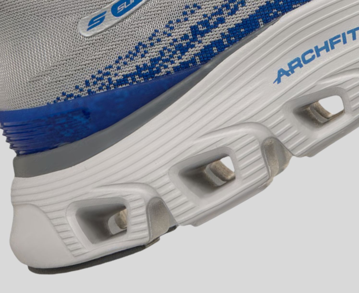 - Patented Skechers Arch Fit® insole system with podiatrist-certified arch support, developed with 20 years of data and 120,000 unweighted foot scans
