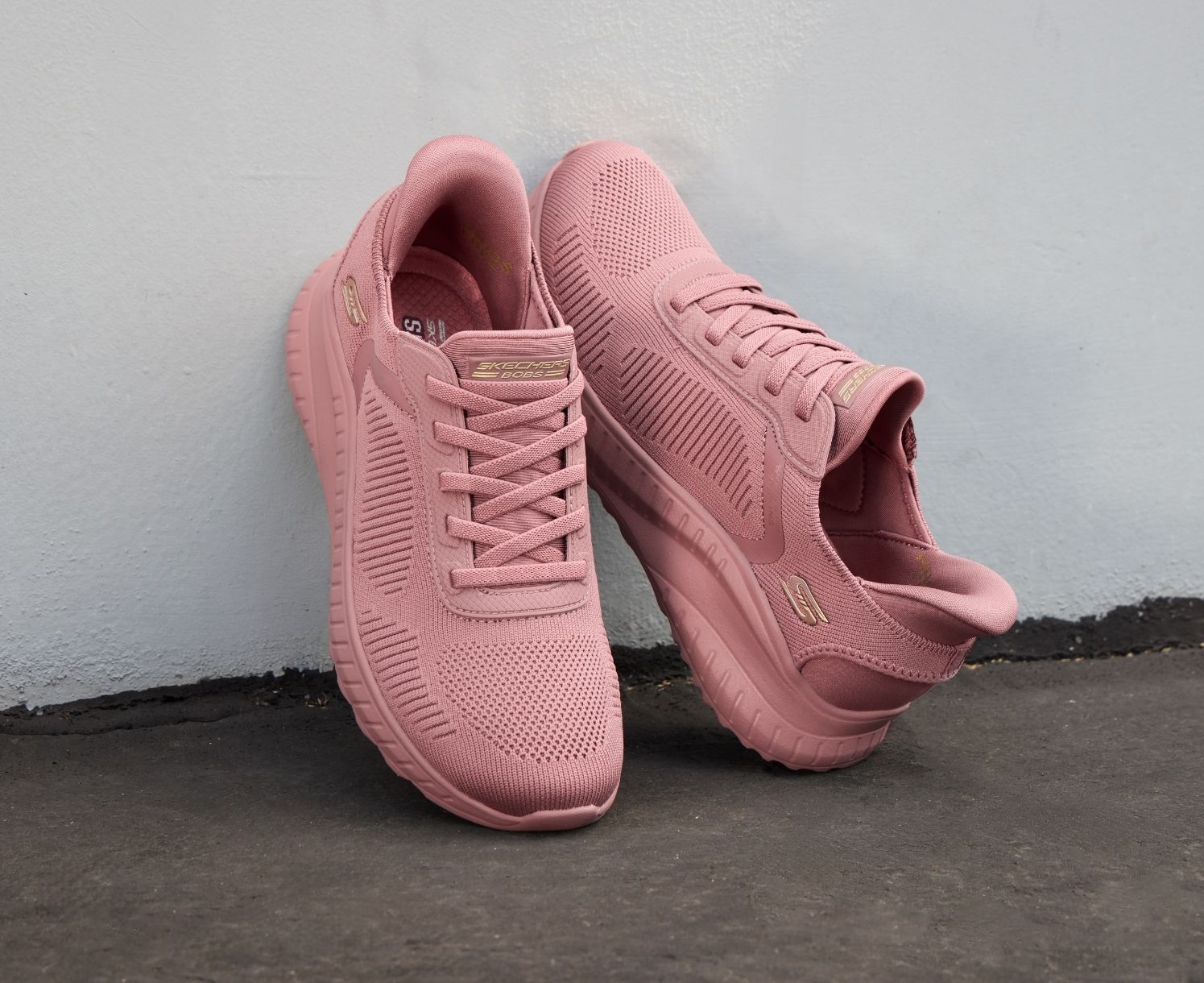 Step into athletic style and comfort wearing Skechers Hands Free Slip-ins®: BOBS Sport Squad Chaos - Current Muse. Designed with our Exclusive Heel Pillow, this fashion style features an engineered knit upper with stretch laces and a cushioned Skechers Memory Foam insole.
