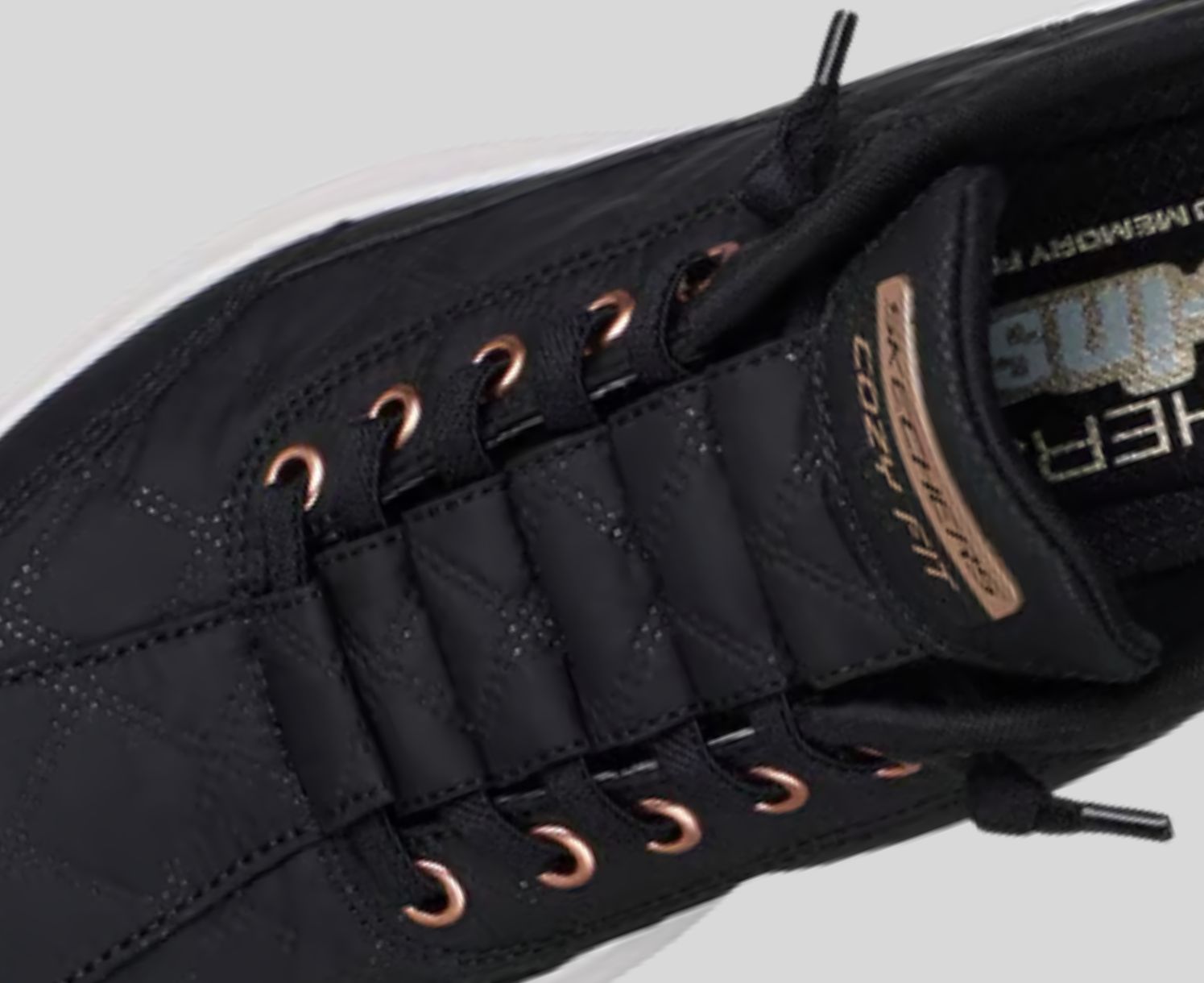 Skechers Cozy Fit® premium laser-stitched materials wrap your feet in luxury, providing a soft, natural fit for ultimate comfort.