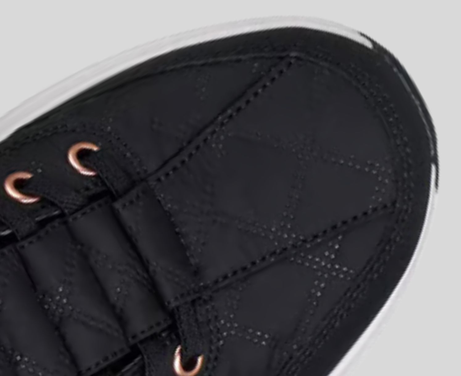 - Air-quilted fabric and duraleather upper with tied-off stretch laces