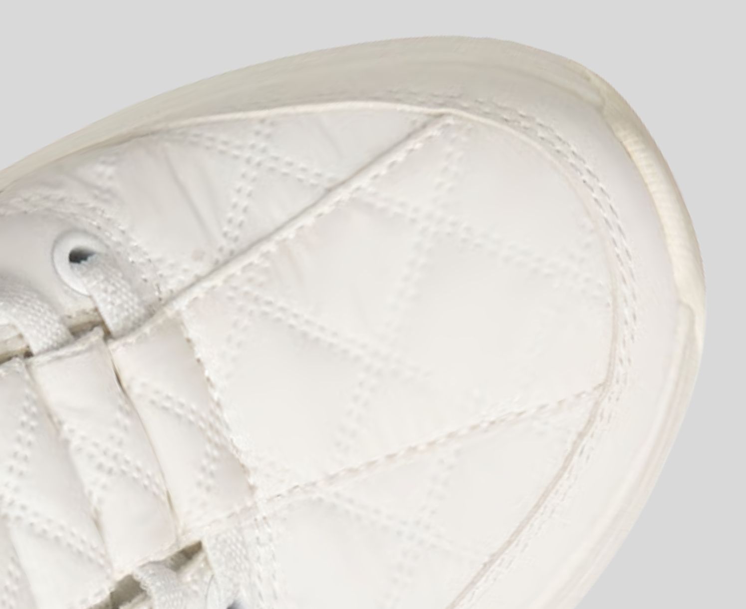 - Air-quilted fabric and synthetic overlay upper with tied-off stretch laces
