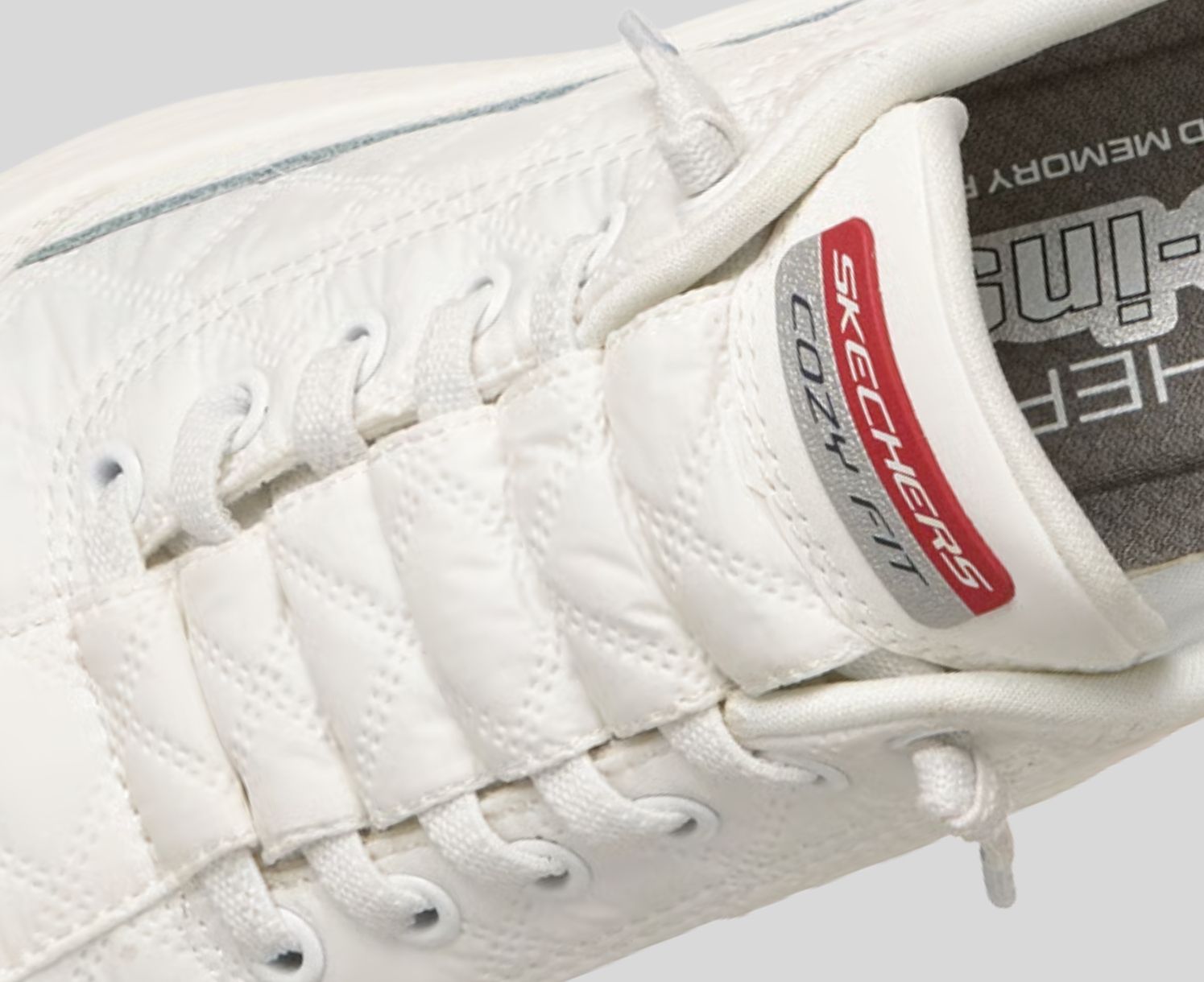 Skechers Cozy Fit® premium soft quilted materials wrap your feet in luxury, providing a cozy, natural fit for ultimate comfort.