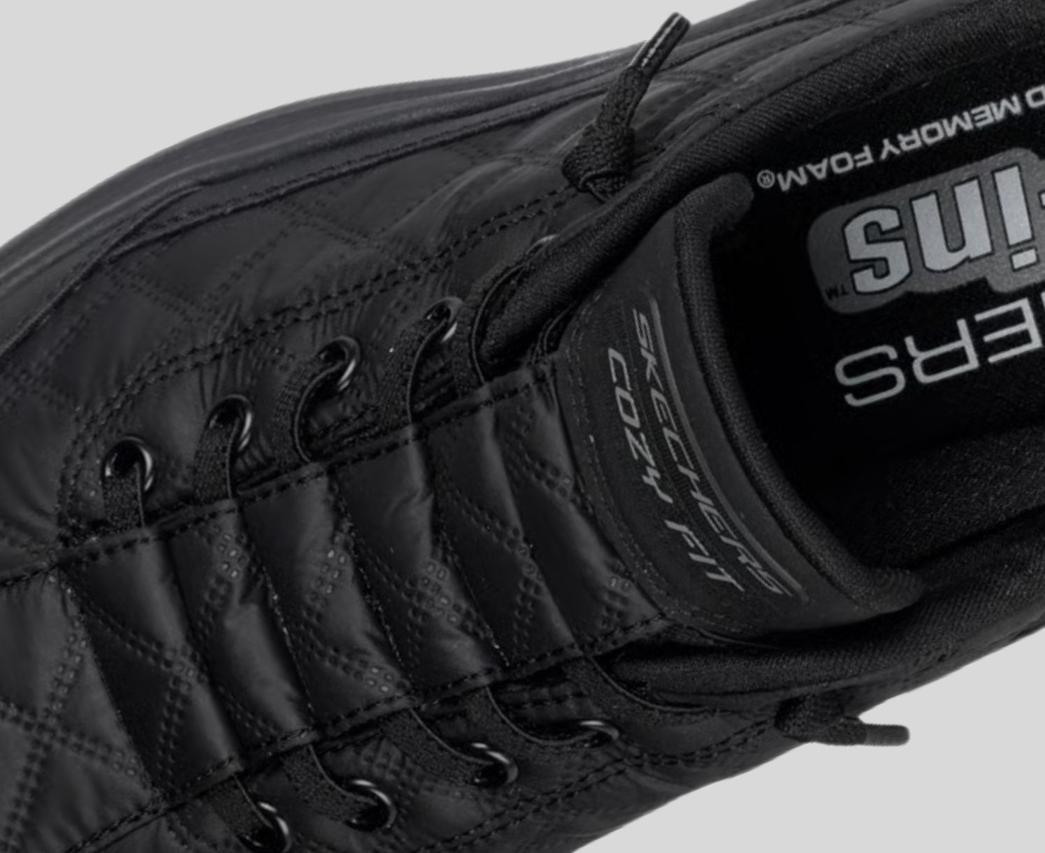 Skechers Cozy Fit® premium soft quilted materials wrap your feet in luxury, providing a cozy, natural fit for ultimate comfort.