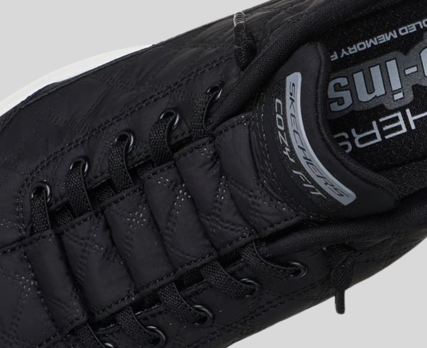 Skechers Cozy Fit® premium soft quilted materials wrap your feet in luxury, providing a cozy, natural fit for ultimate comfort.