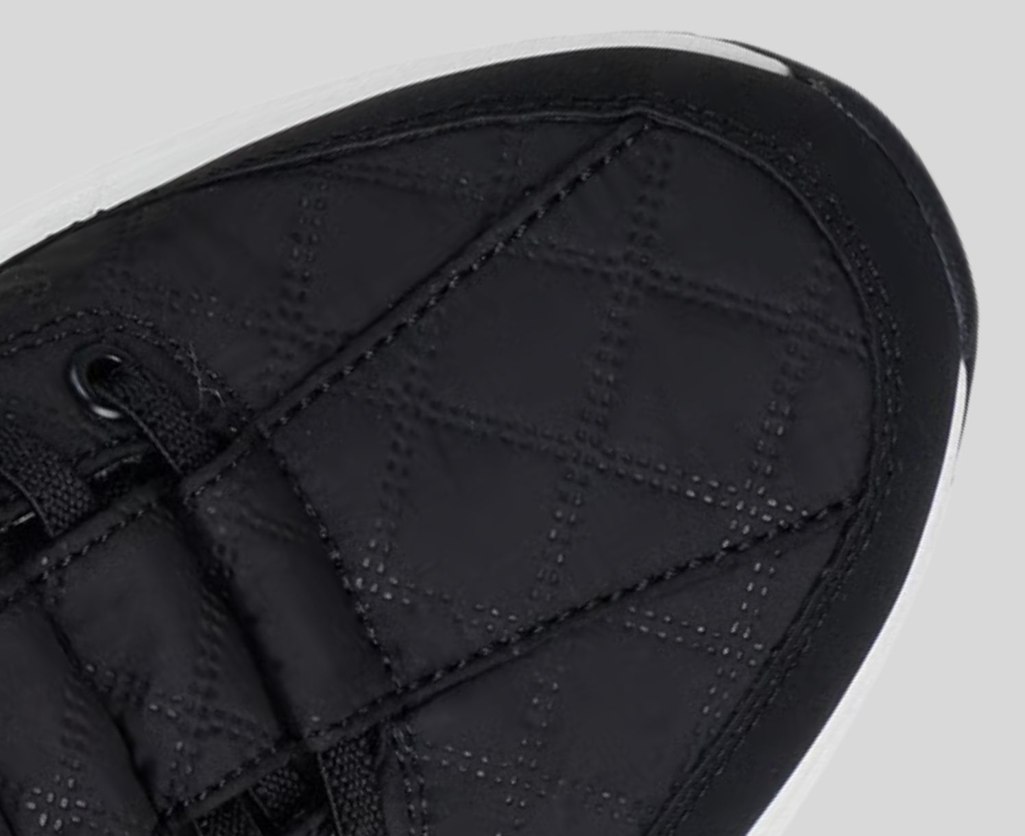- Air-quilted fabric and synthetic overlay upper with tied-off stretch laces