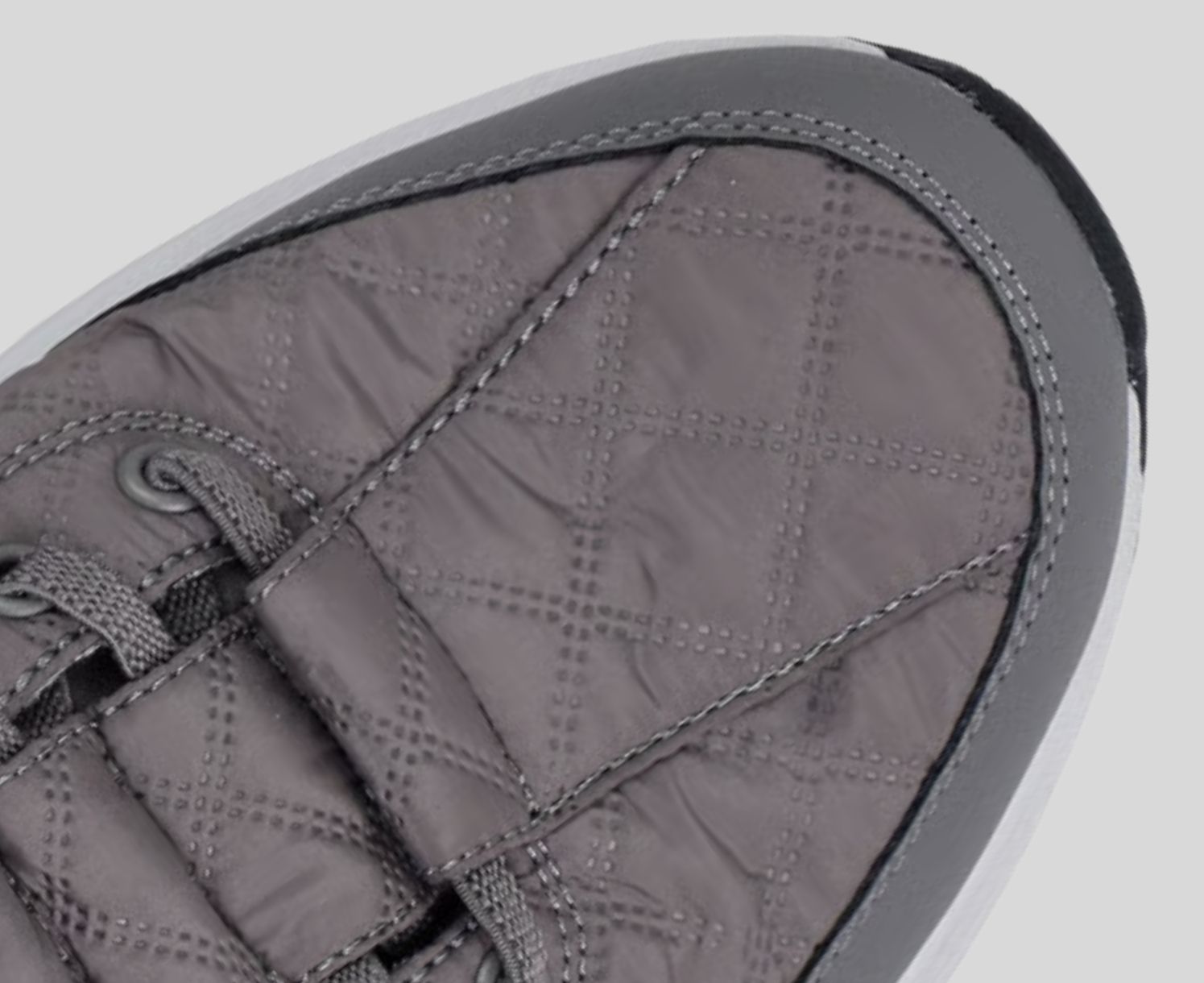 - Air-quilted fabric and synthetic overlay upper with tied-off stretch laces