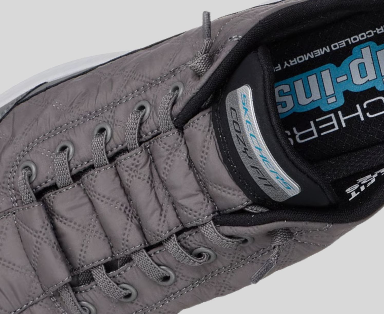 Skechers Cozy Fit® premium soft quilted materials wrap your feet in luxury, providing a cozy, natural fit for ultimate comfort.