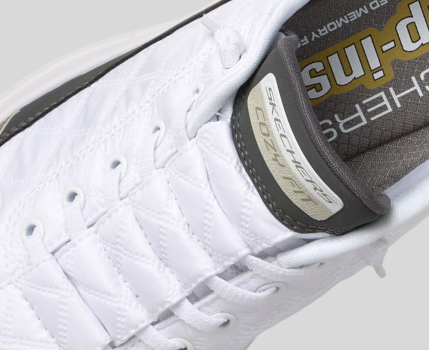 Skechers Cozy Fit® premium soft quilted materials wrap your feet in luxury, providing a cozy, natural fit for ultimate comfort.