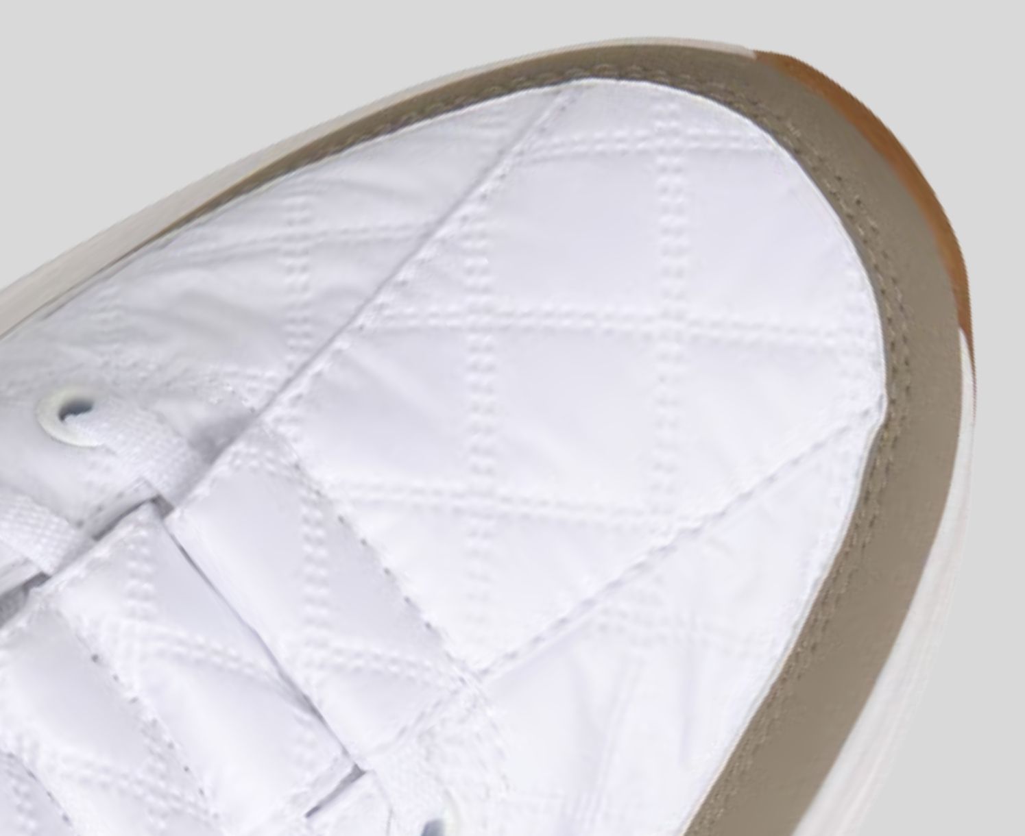 - Quilted fabric and synthetic overlay upper with tied-off stretch laces