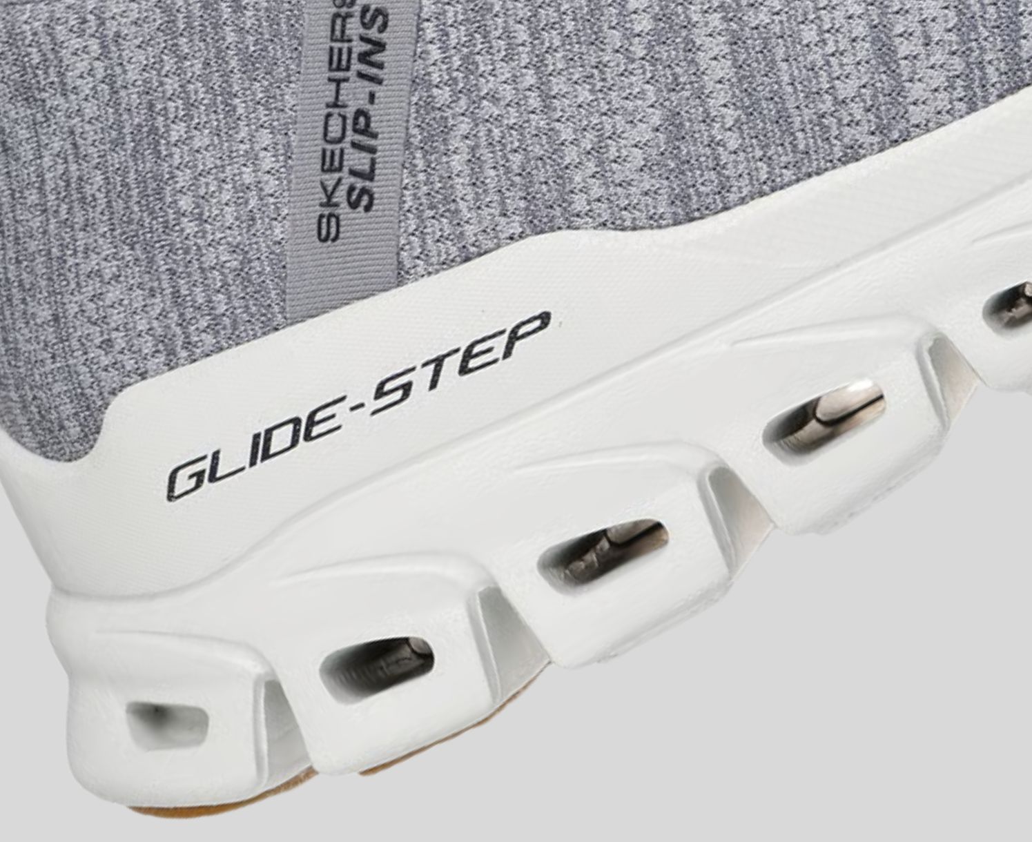 The Skechers Glide-Step® geometric midsole is designed to provide natural momentum with every step, offering a pillow-like soft landing and explosive takeoff.