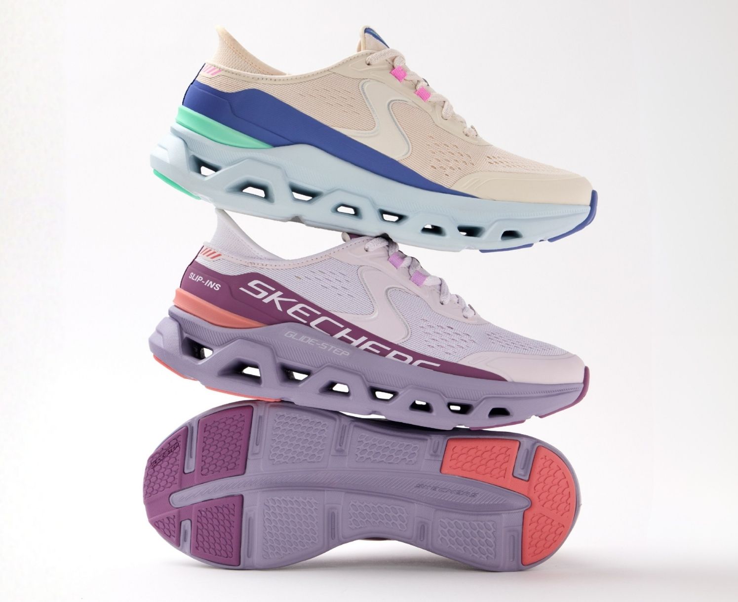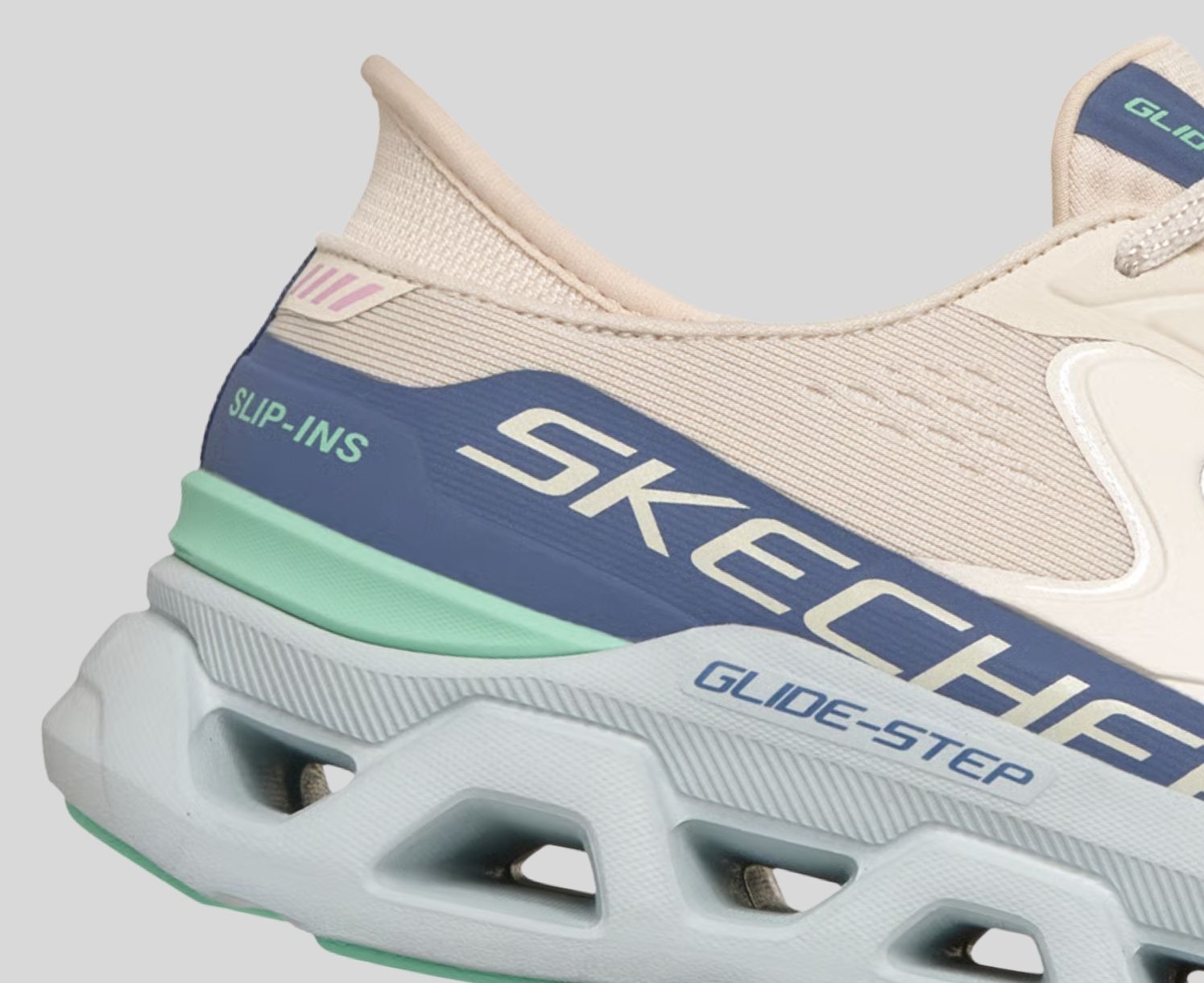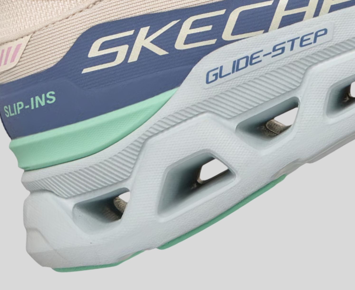 The Skechers Glide-Step® geometric midsole is designed to provide natural momentum with every step, offering a pillow-like soft landing and explosive takeoff.