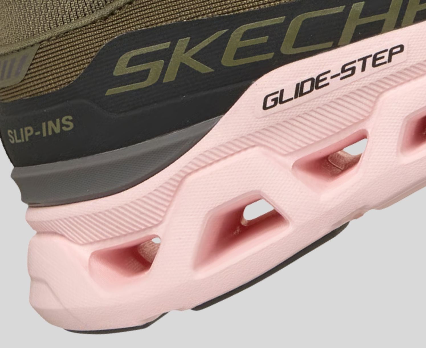 The Skechers Glide-Step® geometric midsole is designed to provide natural momentum with every step, offering a pillow-like soft landing and explosive takeoff.