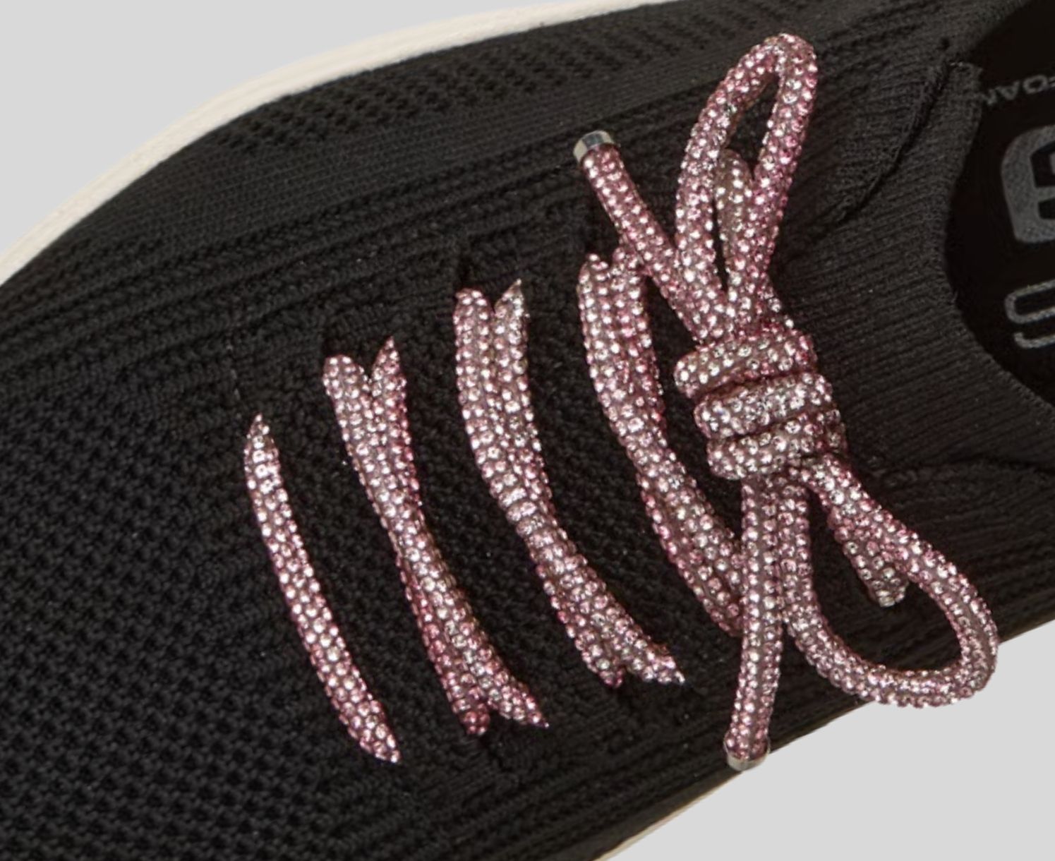Tied-off decorative laces and an easy slip-on design. Laces never come untied.