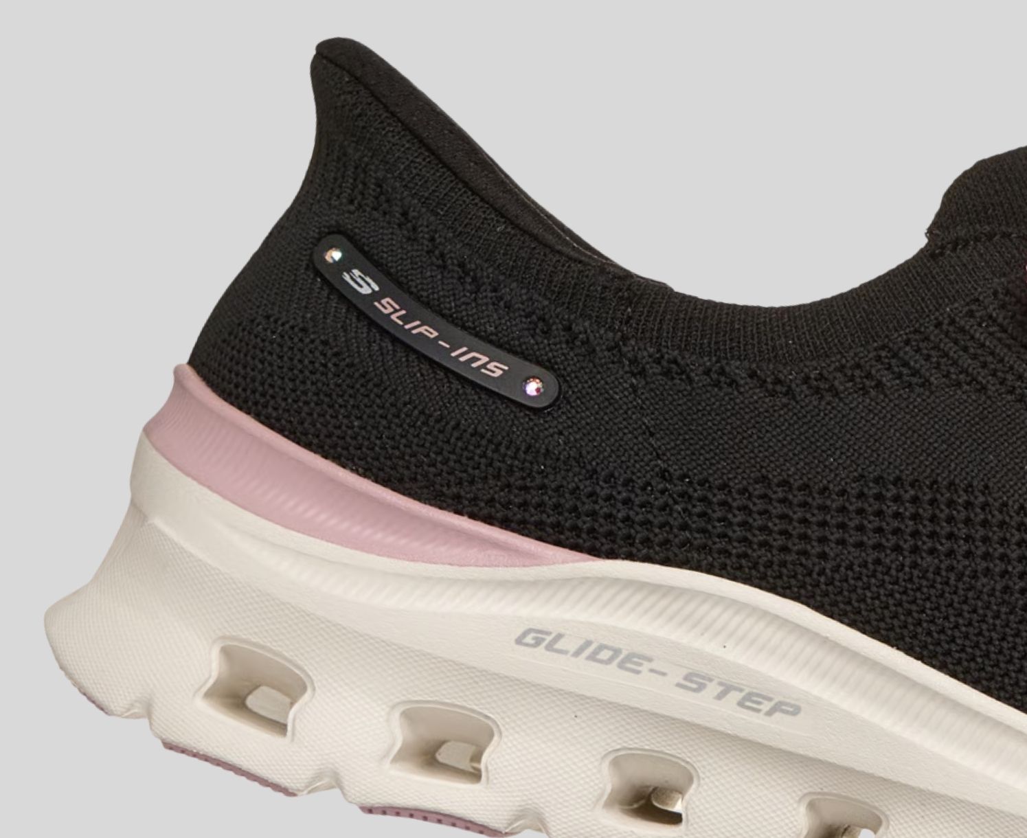 STEP-N-GOS Ease into everyday comfort with a touch of dazzle wearing Skechers Hands Free Slip-ins®: Glide-Step® Pro - Rhinestone Radiance. Designed with our Heel Pillow®, this casual vegan slip-on features a Stretch Fit® engineered knit upper with rhinestone-embellished deco laces and a cushioned Skechers Air-Cooled Memory Foam® insole.