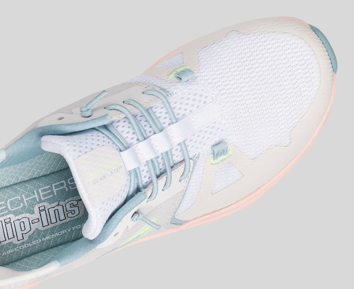 The Skechers Glide-Step® geometric midsole is designed to provide natural momentum with every step, offering a pillow-like soft landing and explosive takeoff.