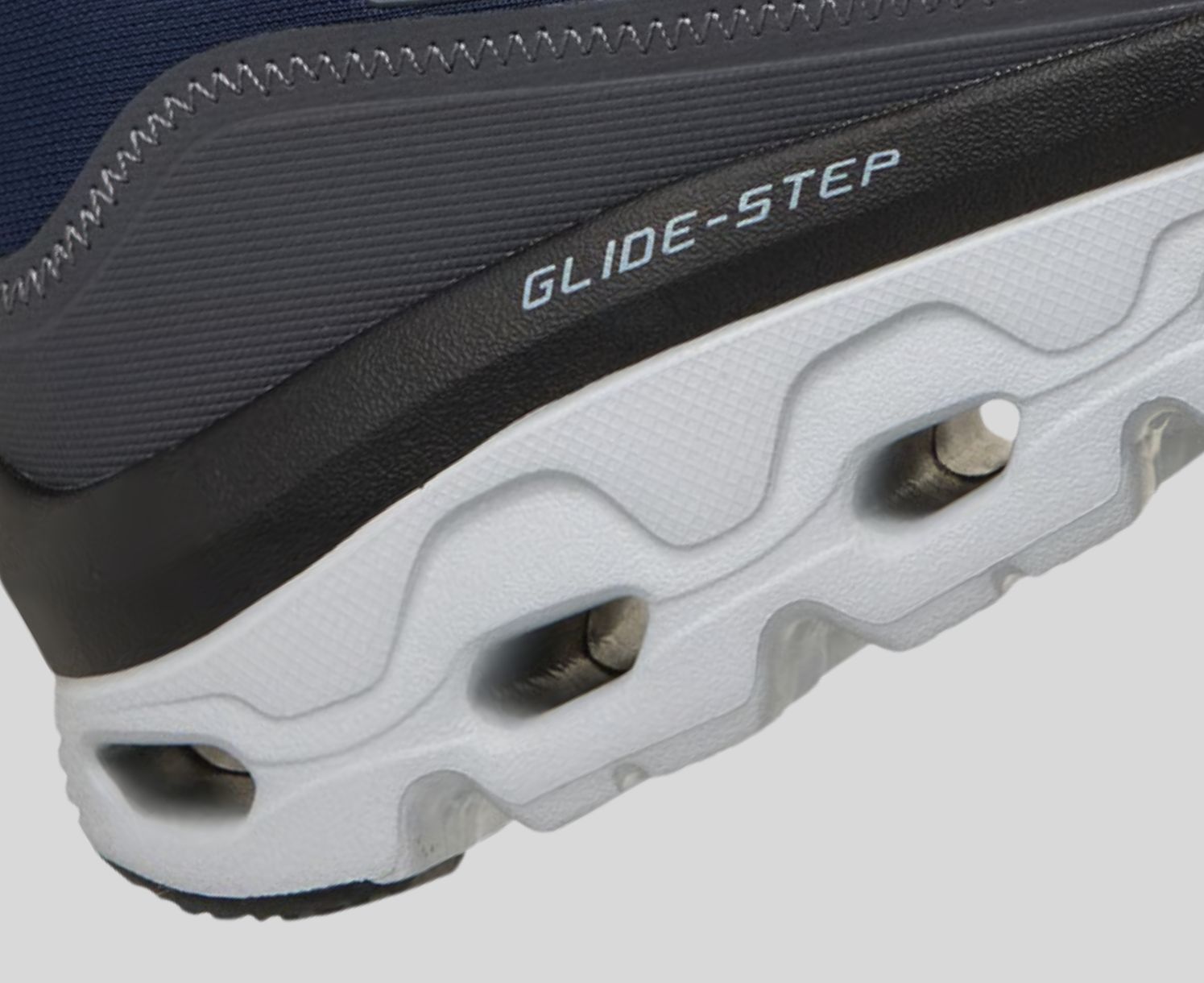 The Skechers Glide-Step® geometric midsole is designed to provide natural momentum with every step, offering a pillow-like soft landing and explosive takeoff.