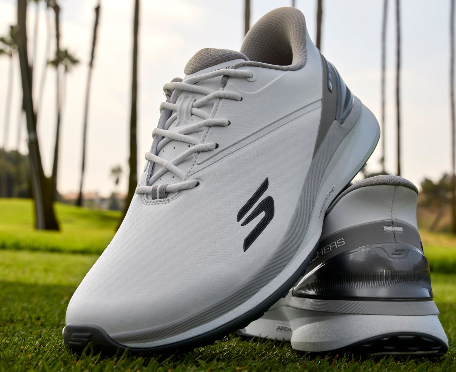 Play at your peak with Matt Fitzpatrick-inspired performance in Skechers Hands Free Slip-ins® Golf: Blade Tour. This slip-on waterproof design features a leather-like Clarino upper that delivers a premium feel. It's enhanced with our innovative Heel Pillow®, adjustable laces, supportive Arch Fit® insole, lightweight ECO FLIGHT cushioning, and responsive HYPER BURST PRO sock liner. The design is complete with Softspikes® Tour Flex Pro spike outsole for superior traction.