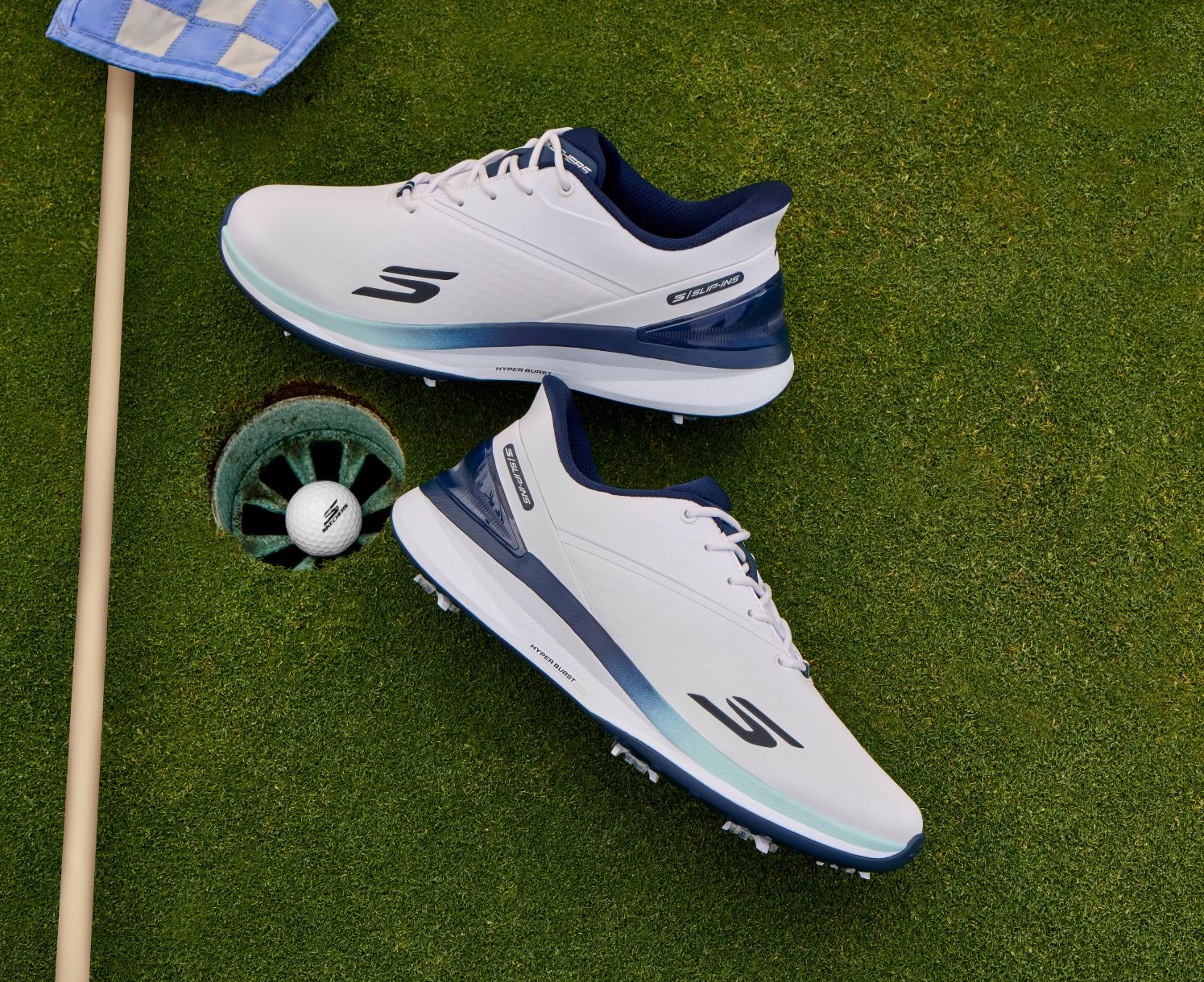 Play at your peak with Matt Fitzpatrick-inspired performance in Skechers Hands Free Slip-ins® Golf: Blade Tour. This slip-on waterproof design features a leather-like Clarino upper that delivers a premium feel. It's enhanced with our innovative Heel Pillow®, adjustable laces, supportive Arch Fit® insole, lightweight ECO FLIGHT cushioning, and responsive HYPER BURST PRO sock liner. The design is complete with Softspikes® Tour Flex Pro spike outsole for superior traction.