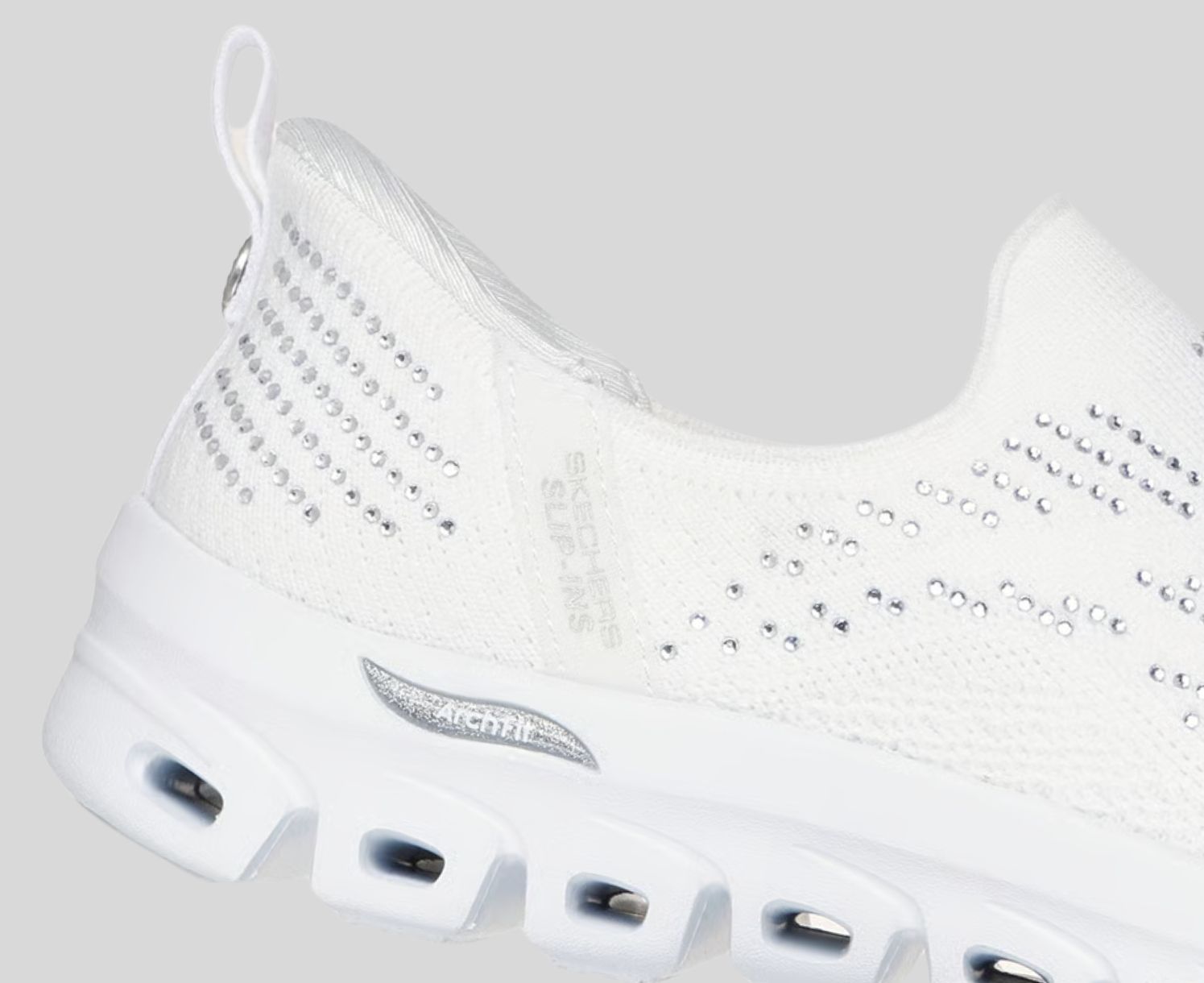 - Rhinestone-embellished knit upper in a laceless fit
