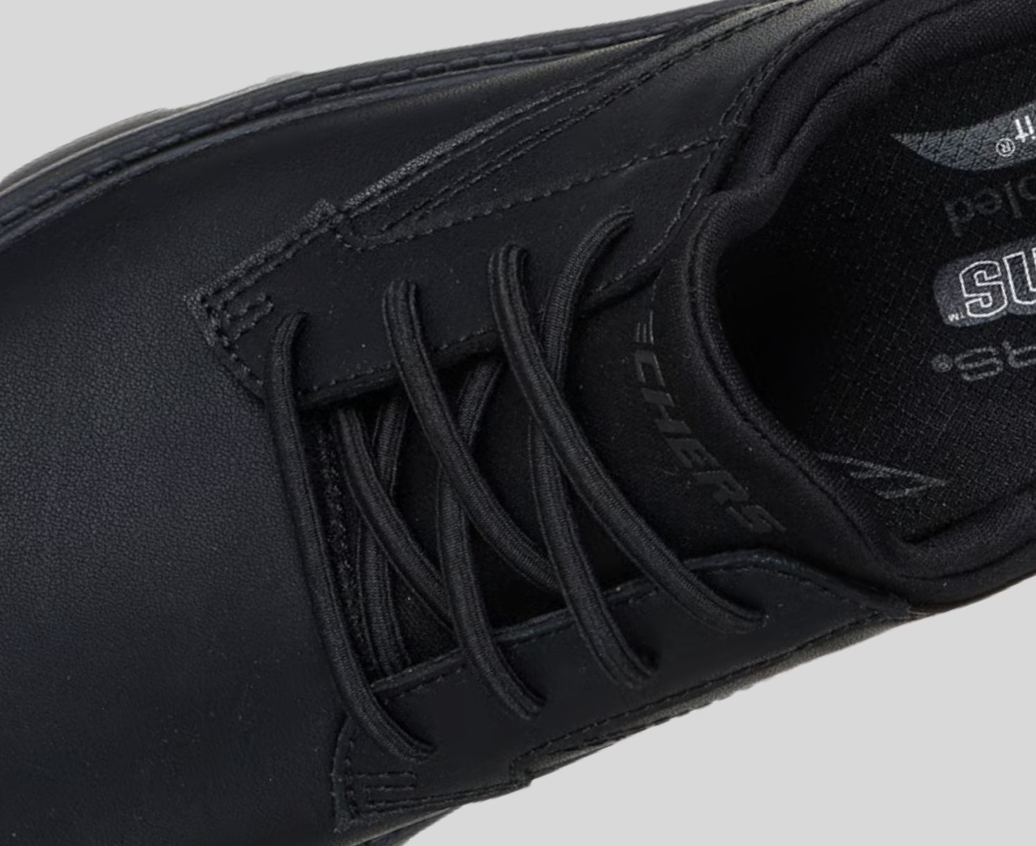 Go from your desk to dinner in stylish comfort with Skechers Hands Free Slip-ins® Relaxed Fit®: Arch Fit® Garza - Langston. Designed with our Heel Pillow®, this roomy slip-on has been granted the APMA Seal of Acceptance and features a round-toe leather upper with synthetic overlays, fixed stretch laces, and an air-cooled Arch Fit® insole.