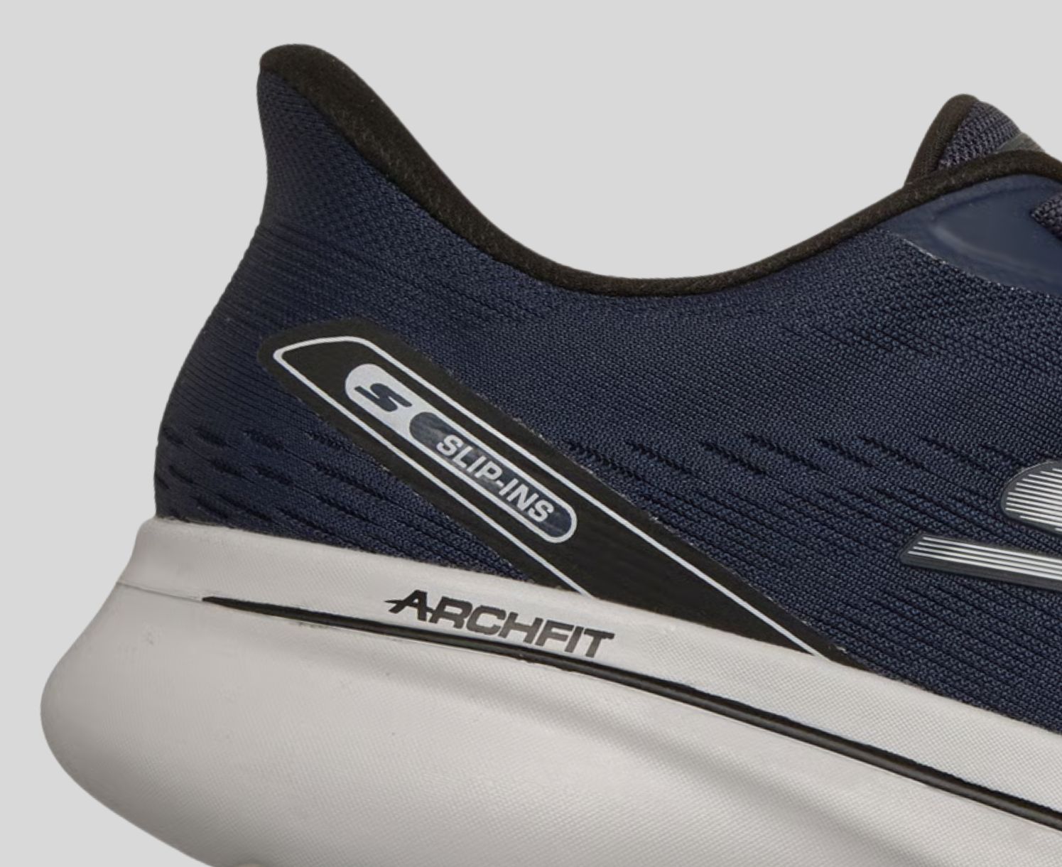 - Patented Skechers Arch Fit® insole system with podiatrist-certified arch support, developed with 20 years of data and 120,000 unweighted foot scans