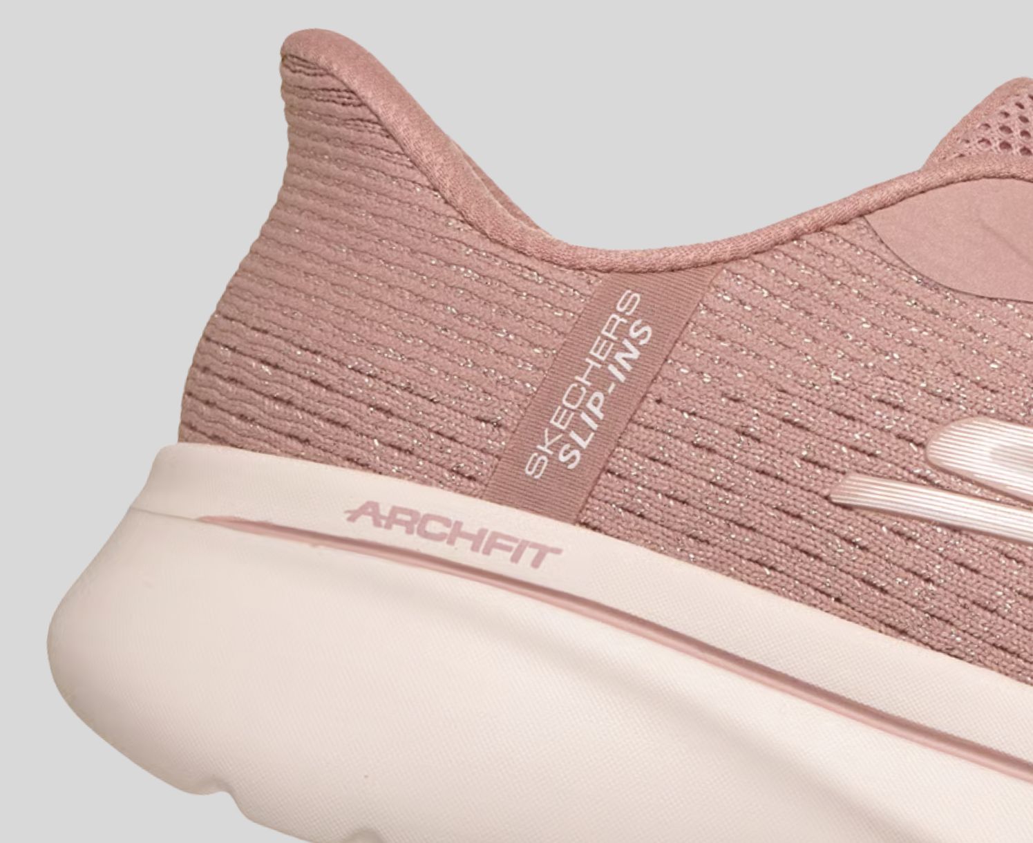 - Patented Skechers Arch Fit® insole system with podiatrist-certified arch support, developed with 20 years of data and 120,000 unweighted foot scans