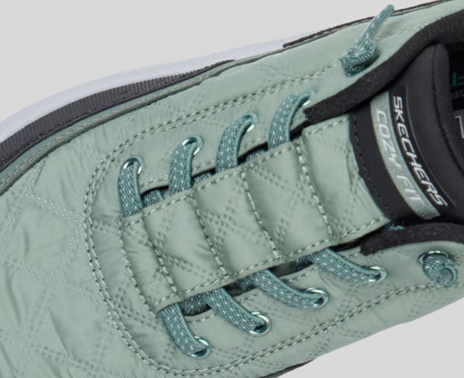 Skechers Cozy Fit® premium laser-stitched materials wrap your feet in luxury, providing a soft, natural fit for ultimate comfort.