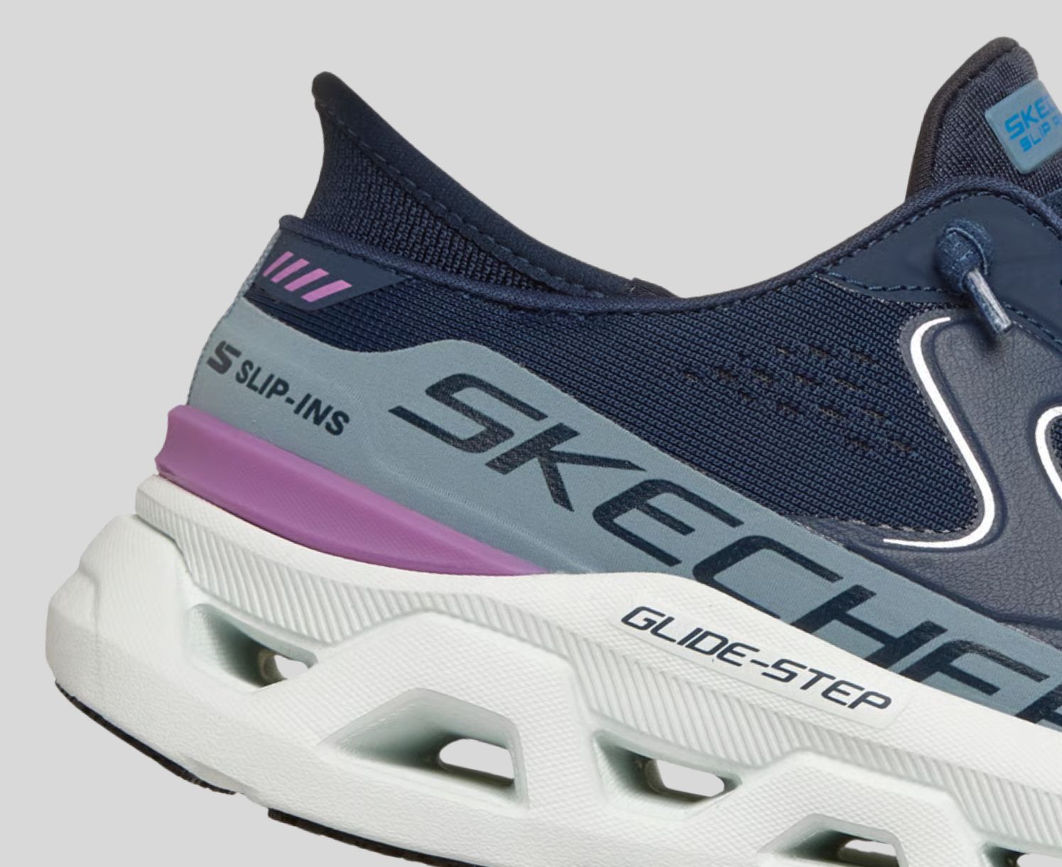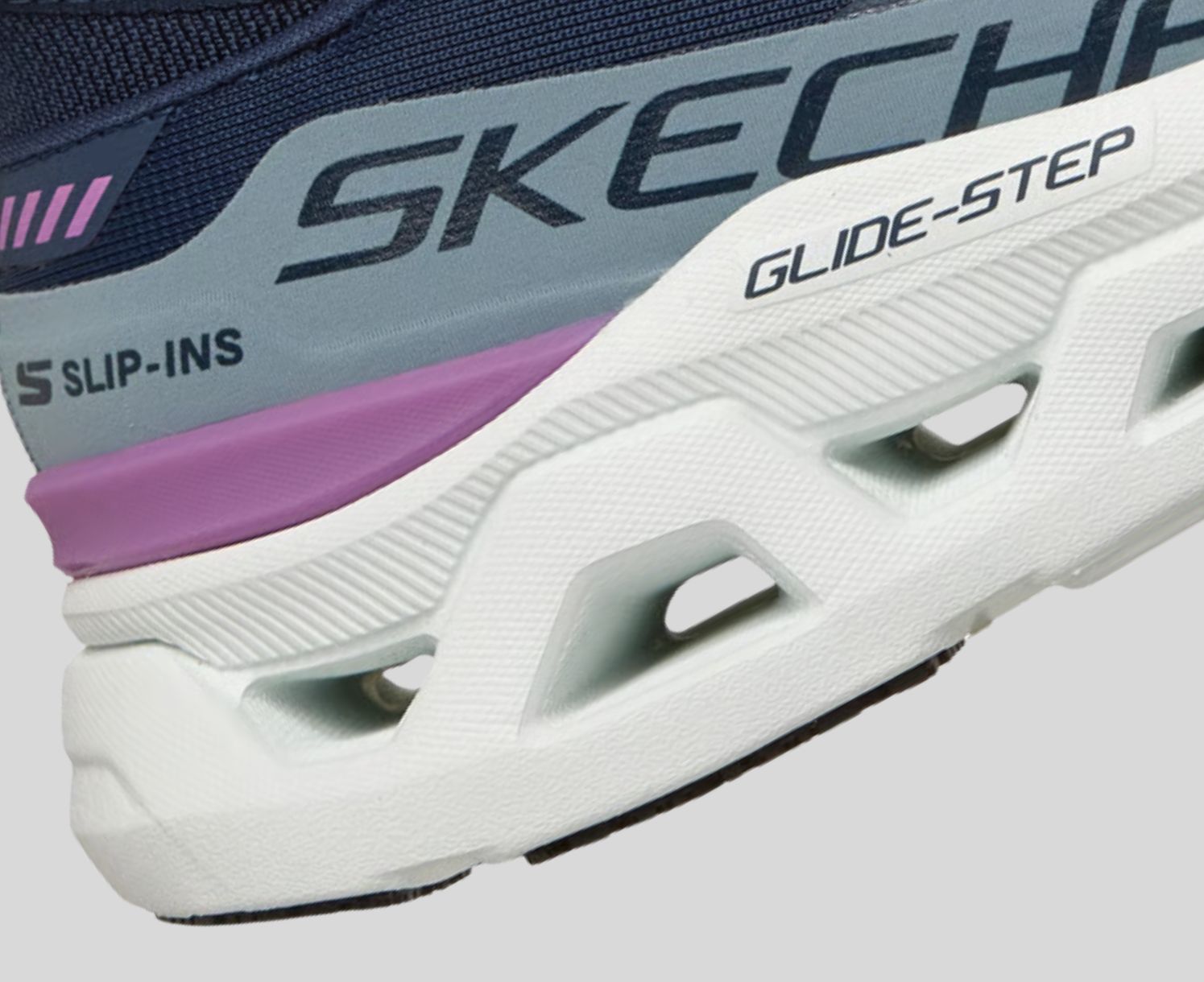 The Skechers Glide-Step® geometric midsole is designed to provide natural momentum with every step, offering a pillow-like soft landing and explosive takeoff.