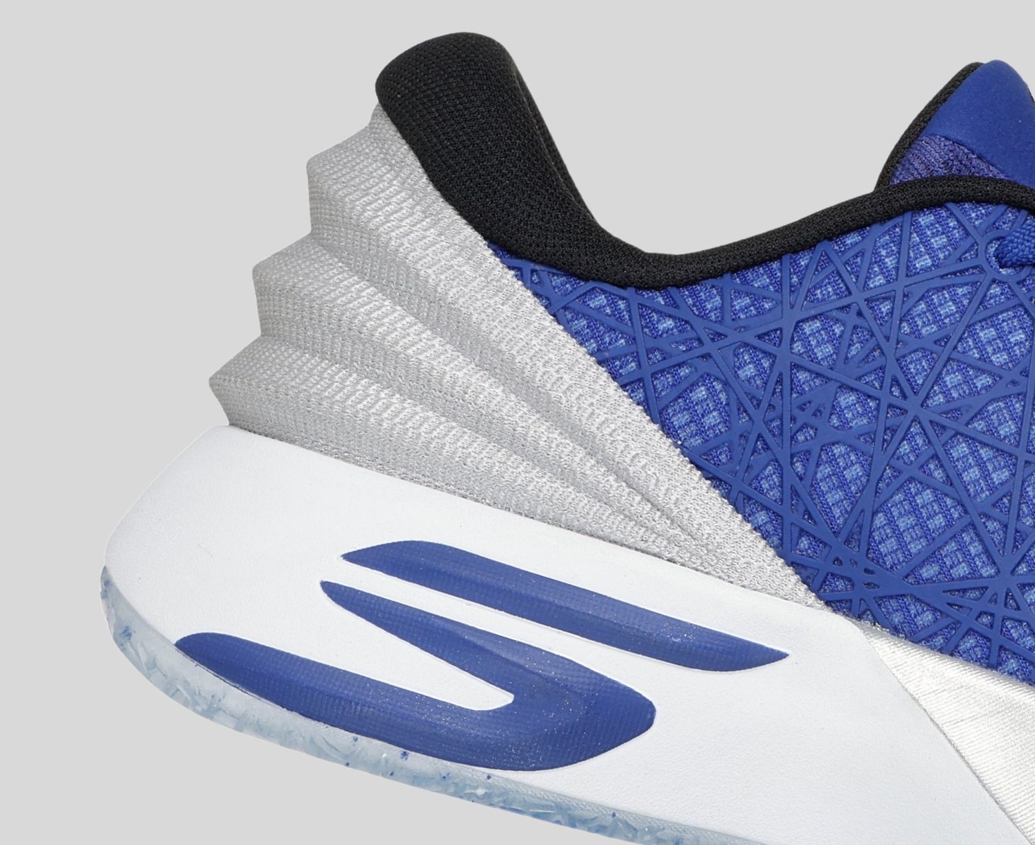 Command the court like Joel Embiid with the Skechers Basketball®: SKX JE1. Inspired by his non-traditional path to the pros and unique playing style that combines finesse with aggressive moves, this signature low-top style features a breathable mesh upper with a protective 3D-printed haptic lockdown cage that articulates down into the Goodyear® Performance Outsole. The heel incorporates three distinctive points symbolizing the pillars of Joel's life - heritage, sports, and family - bringing meaning to every step. Engineered for peak performance with responsive 5GEN® cushioning, a molded Move Foam insole with a supportive Arch Stability® sock liner featuring Joel's "Miniature Géant" logo on the left, and an internal shank for first-step stability when changing direction on the court.