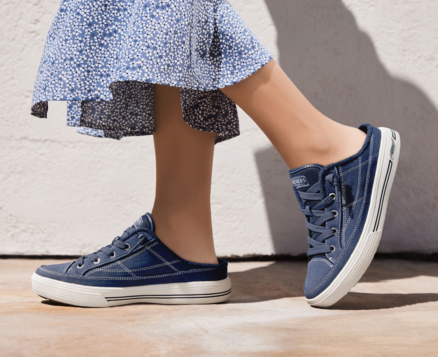 Style classique, confort et soutien hors pair caractérisent la chaussure Skechers Street™ Arch Fit® Arcade - Find Ya There. Cette chaussure à dos ouvert, facile à porter, a reçu le sceau d’acceptation de l’APMA et comprend une empeigne en toile avec surpiqûres contrastantes, des lacets décoratifs, une semelle intérieure Arch Fit® amovible et une semelle intercalaire légère et coussinée.