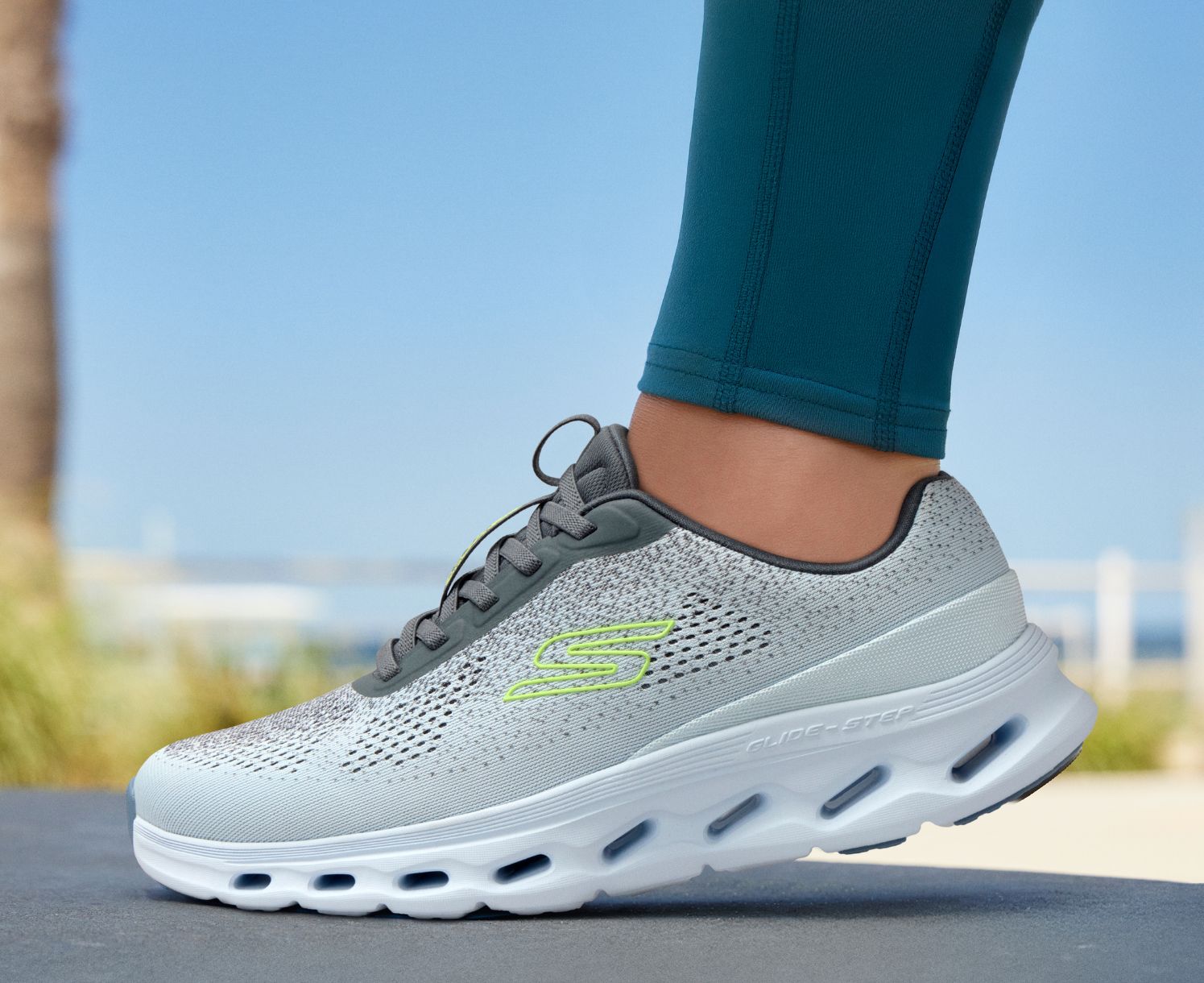 The Skechers Glide-Step® geometric midsole is designed to provide natural momentum with every step, offering a pillow-like soft landing and explosive takeoff.