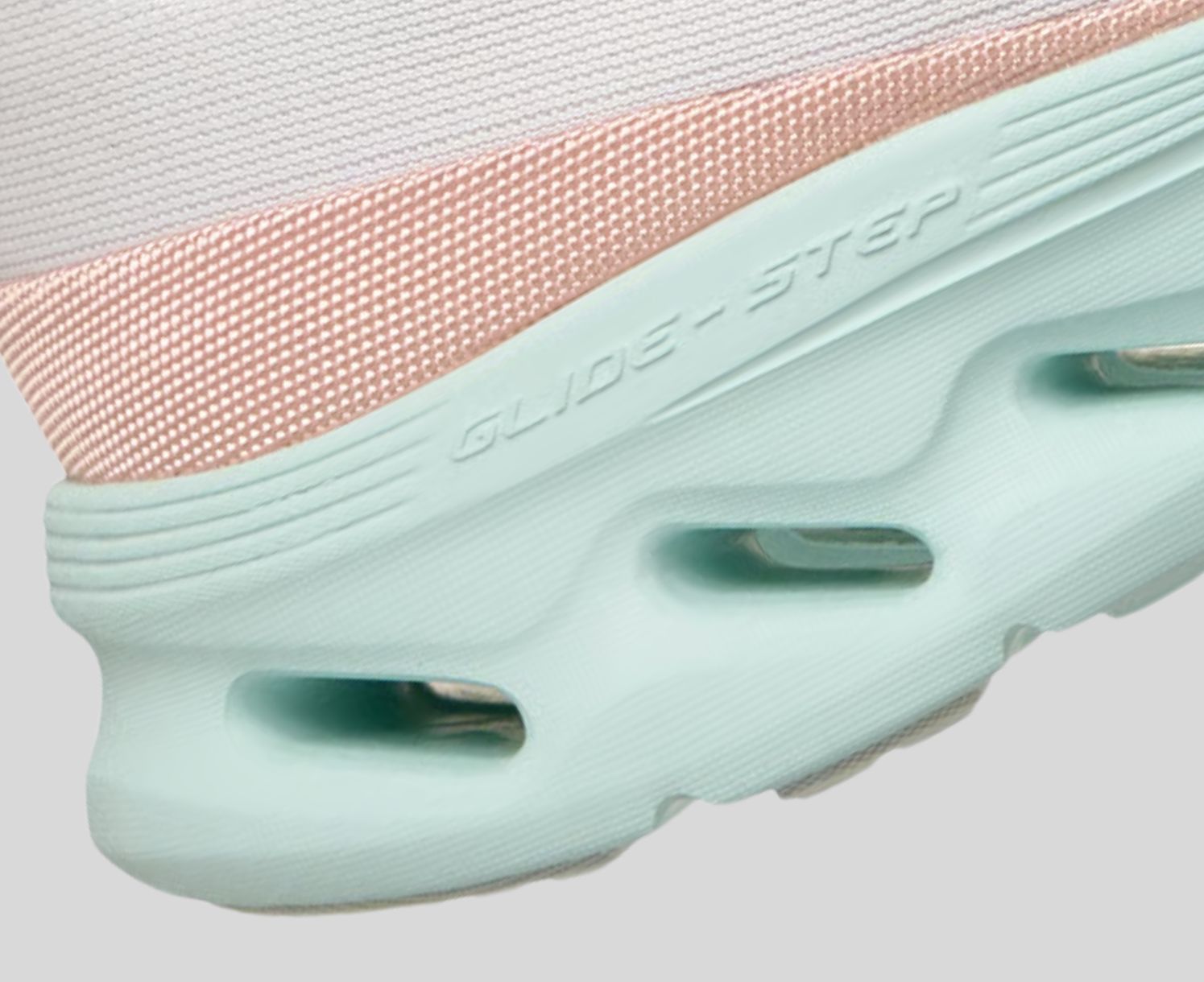 The Skechers Glide-Step® geometric midsole is designed to provide natural momentum with every step, offering a pillow-like soft landing and explosive takeoff.