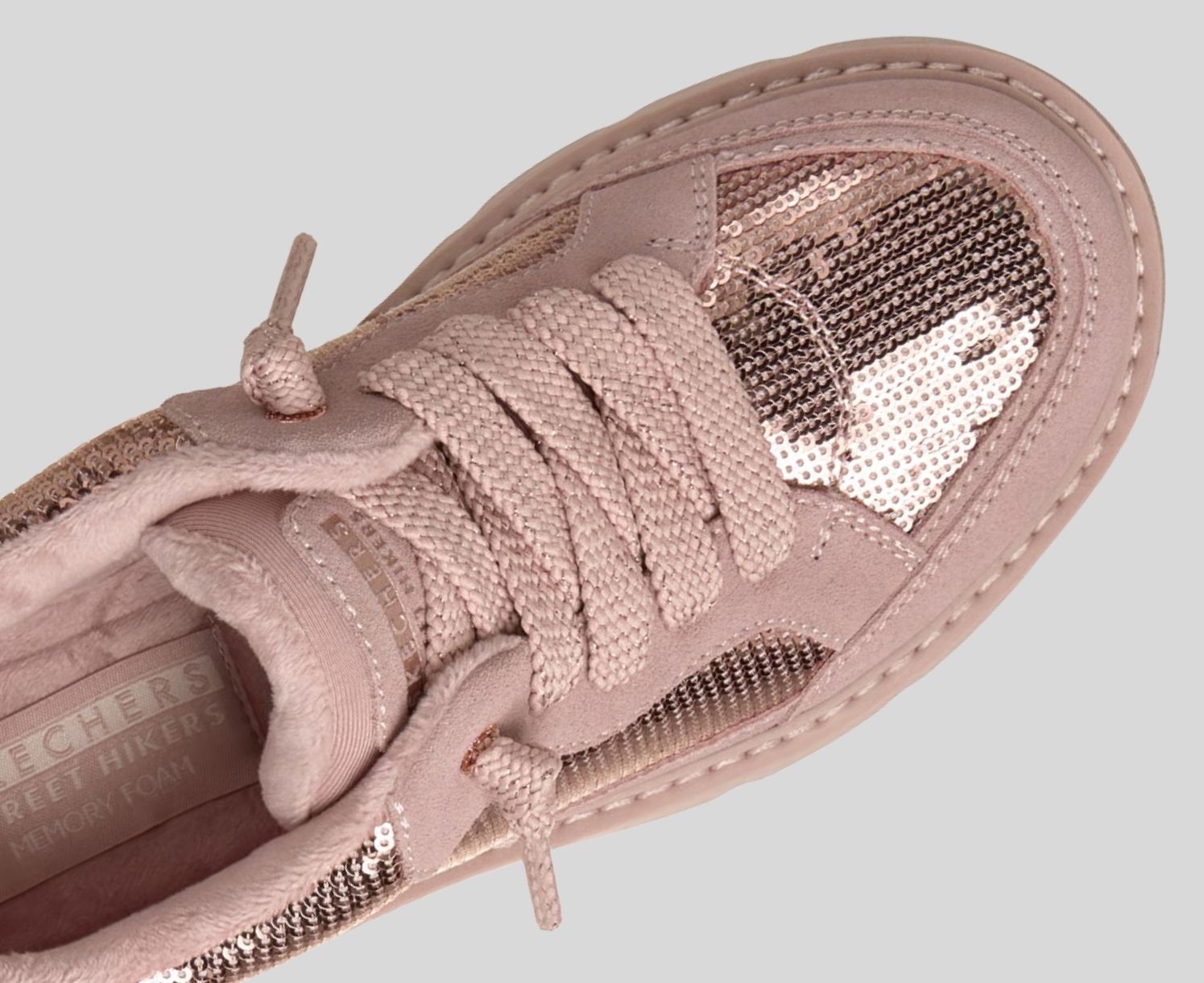 Confort idéal pour l’extérieur et style urbain raffiné caractérisent la chaussure Skechers Street™ Keepsakes Cozy - Street Hiker Glam. Ce modèle hydrofuge, traité avec 3M® Scotchgard®, comprend une empeigne en suède et à paillettes, de gros lacets noués, une doublure en chenille douce, ainsi qu’une semelle intérieure Skechers Memory Foam™ coussinée pour plus de confort à chaque pas.