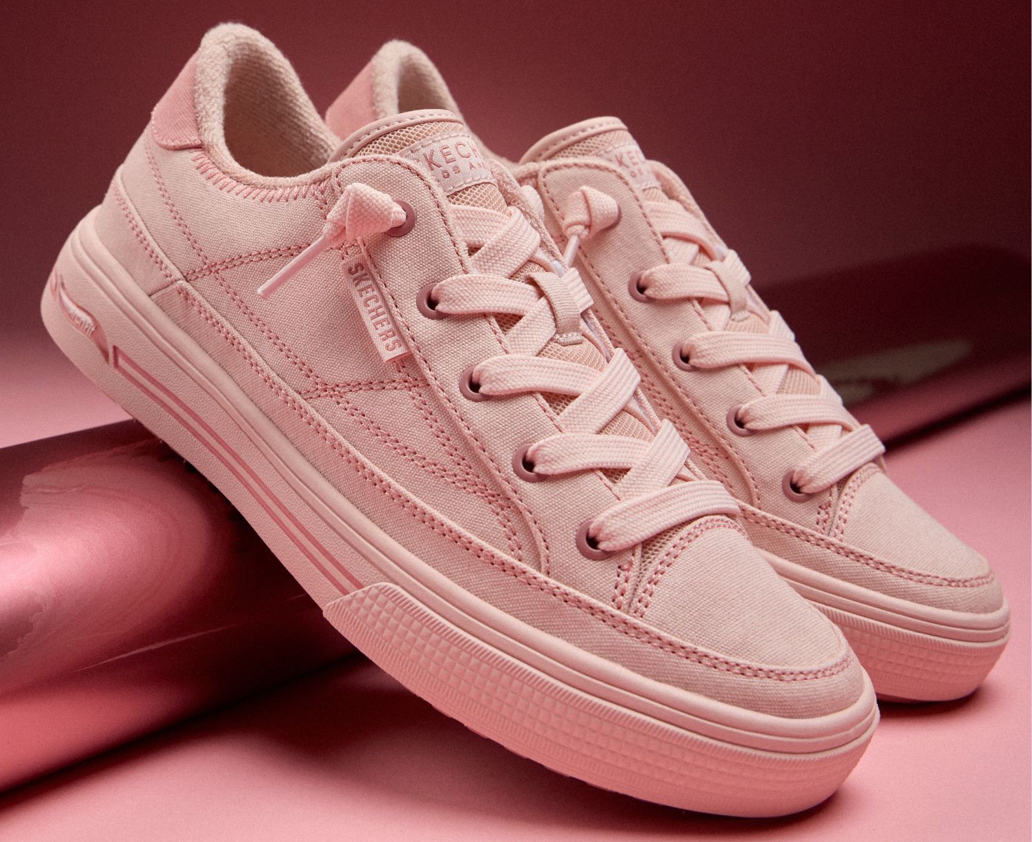 Keep it cute and classic in your favorite Skechers silhouette with Skechers Street Arcade. This easy-on design features a canvas upper with tonal stitching, tied-off stretch laces, and a cushioned comfort insole.