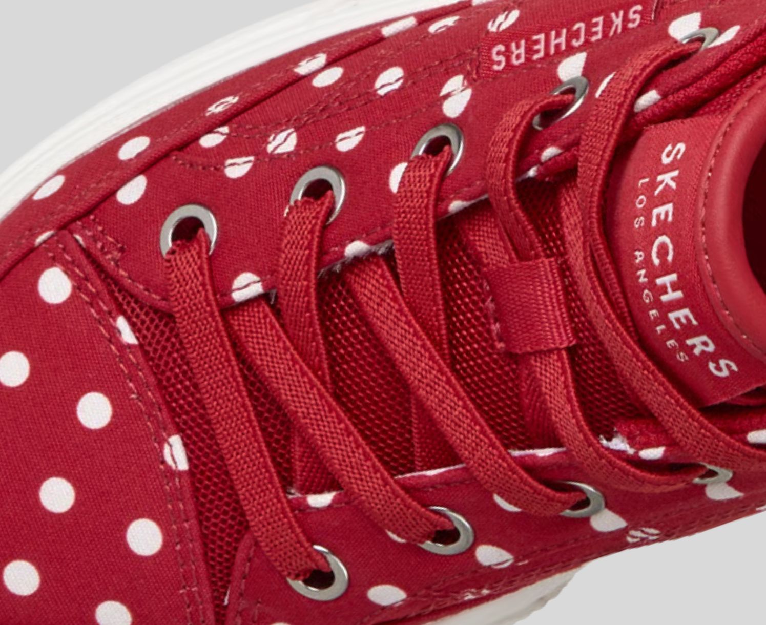 Tied-off decorative laces and an easy slip-on design. Laces never come untied.