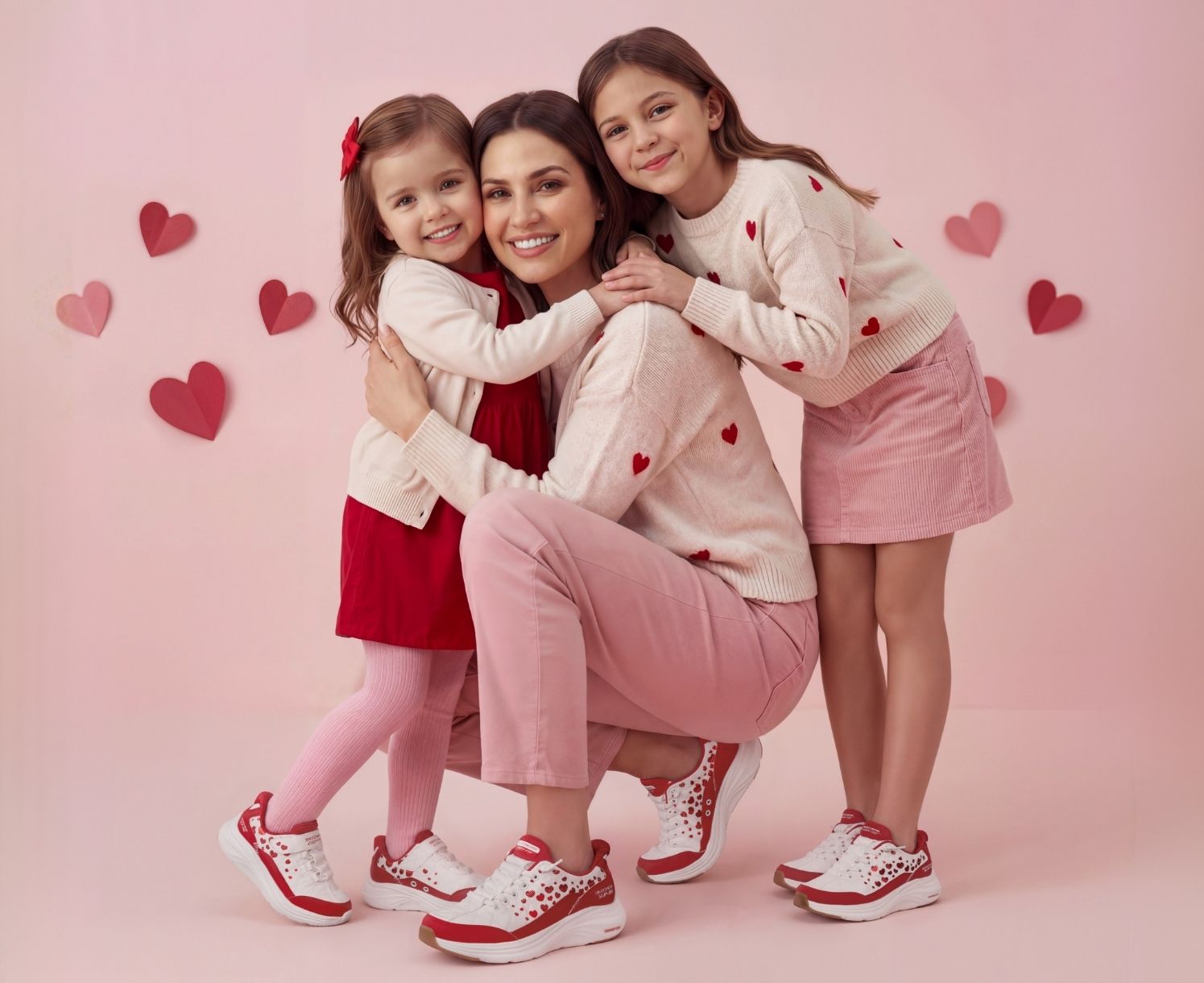 - Empeigne en maille matelassée et en matériau synthétique avec garniture à imprimé de cœur à effet métallisé
