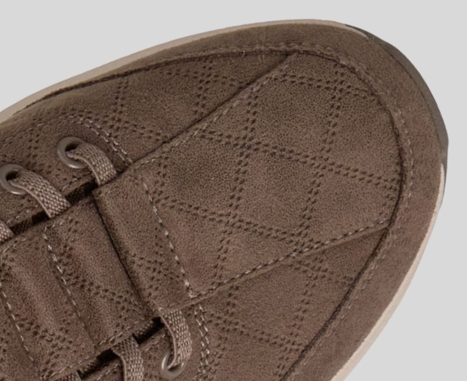 - Air-quilted suede and synthetic upper with tied-off stretch laces