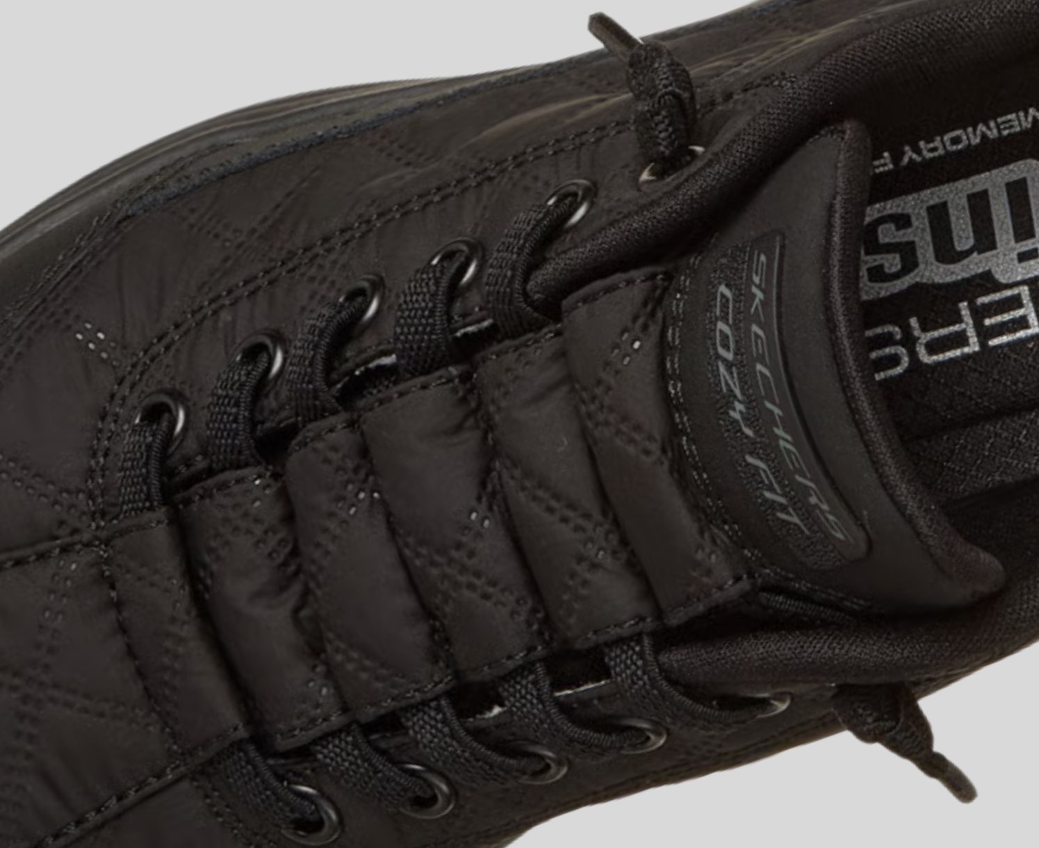 Skechers Cozy Fit® premium soft quilted materials wrap your feet in luxury, providing a cozy, natural fit for ultimate comfort.
