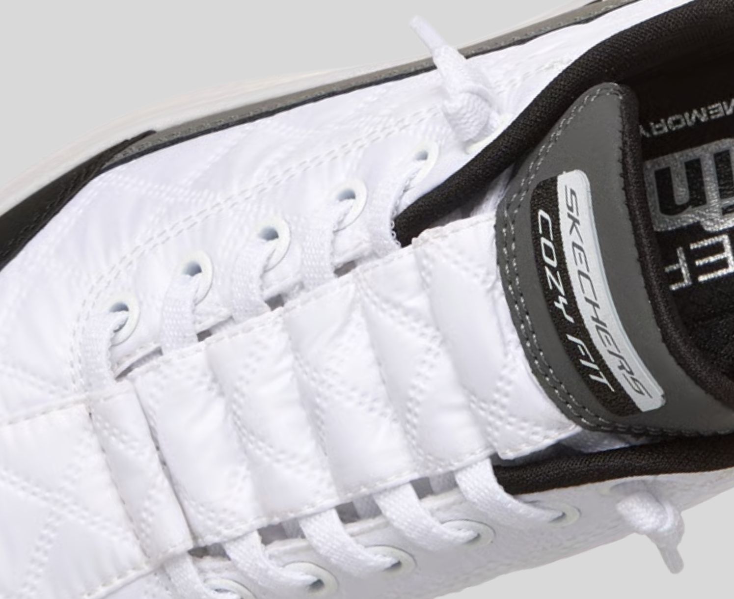 Skechers Cozy Fit® premium soft quilted materials wrap your feet in luxury, providing a cozy, natural fit for ultimate comfort.