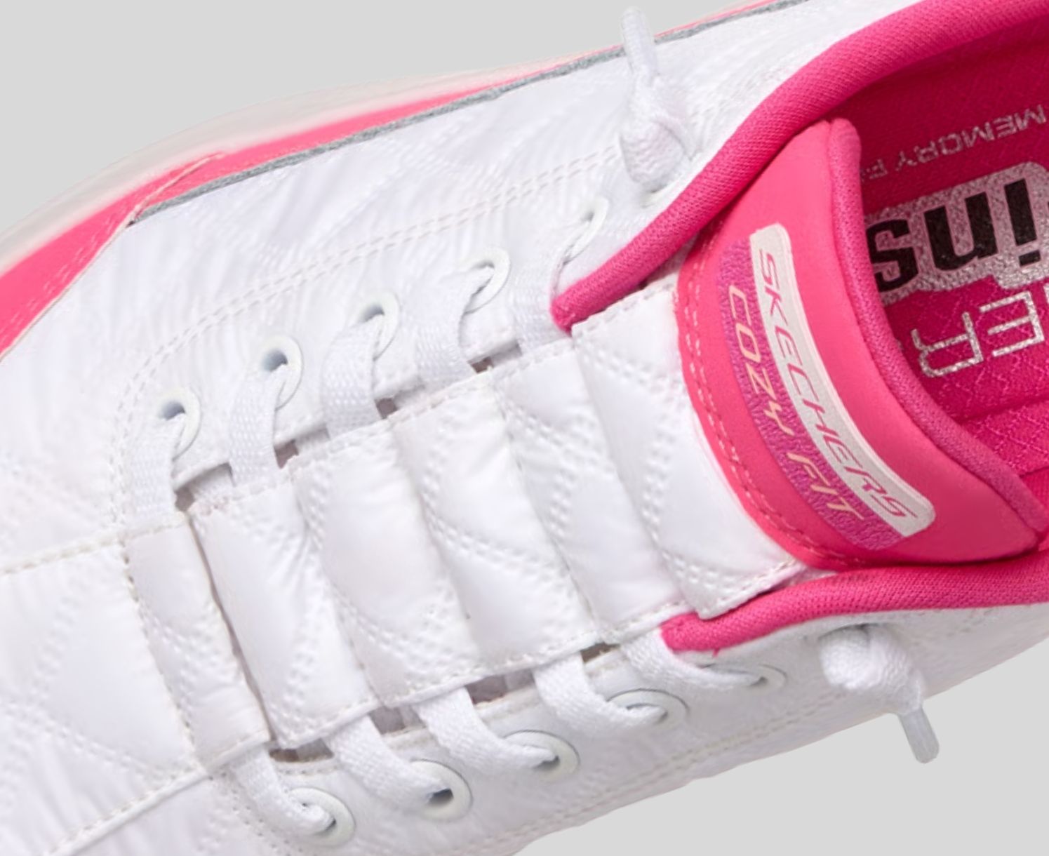 Skechers Cozy Fit® premium soft quilted materials wrap your feet in luxury, providing a cozy, natural fit for ultimate comfort.