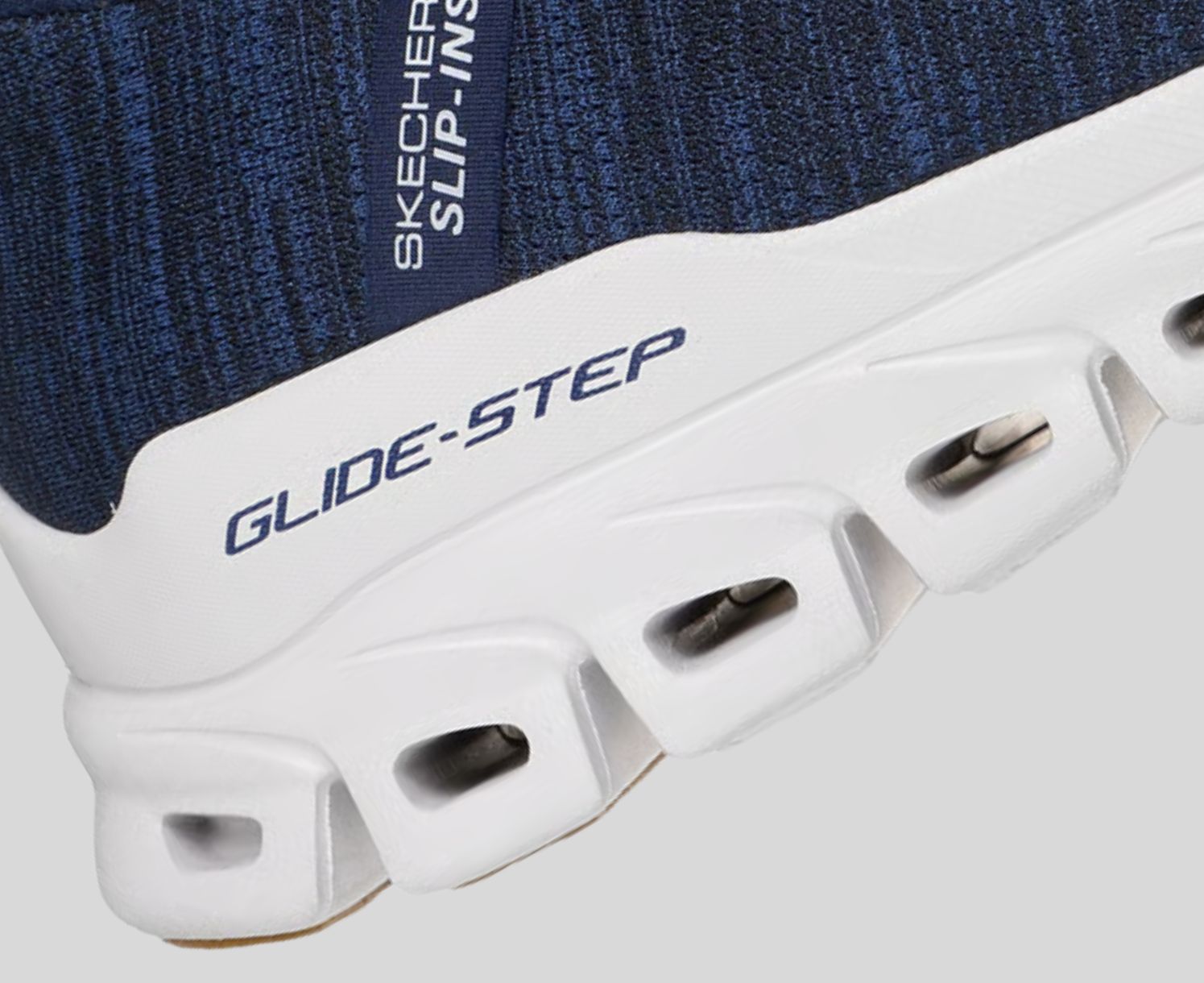 The Skechers Glide-Step® geometric midsole is designed to provide natural momentum with every step, offering a pillow-like soft landing and explosive takeoff.
