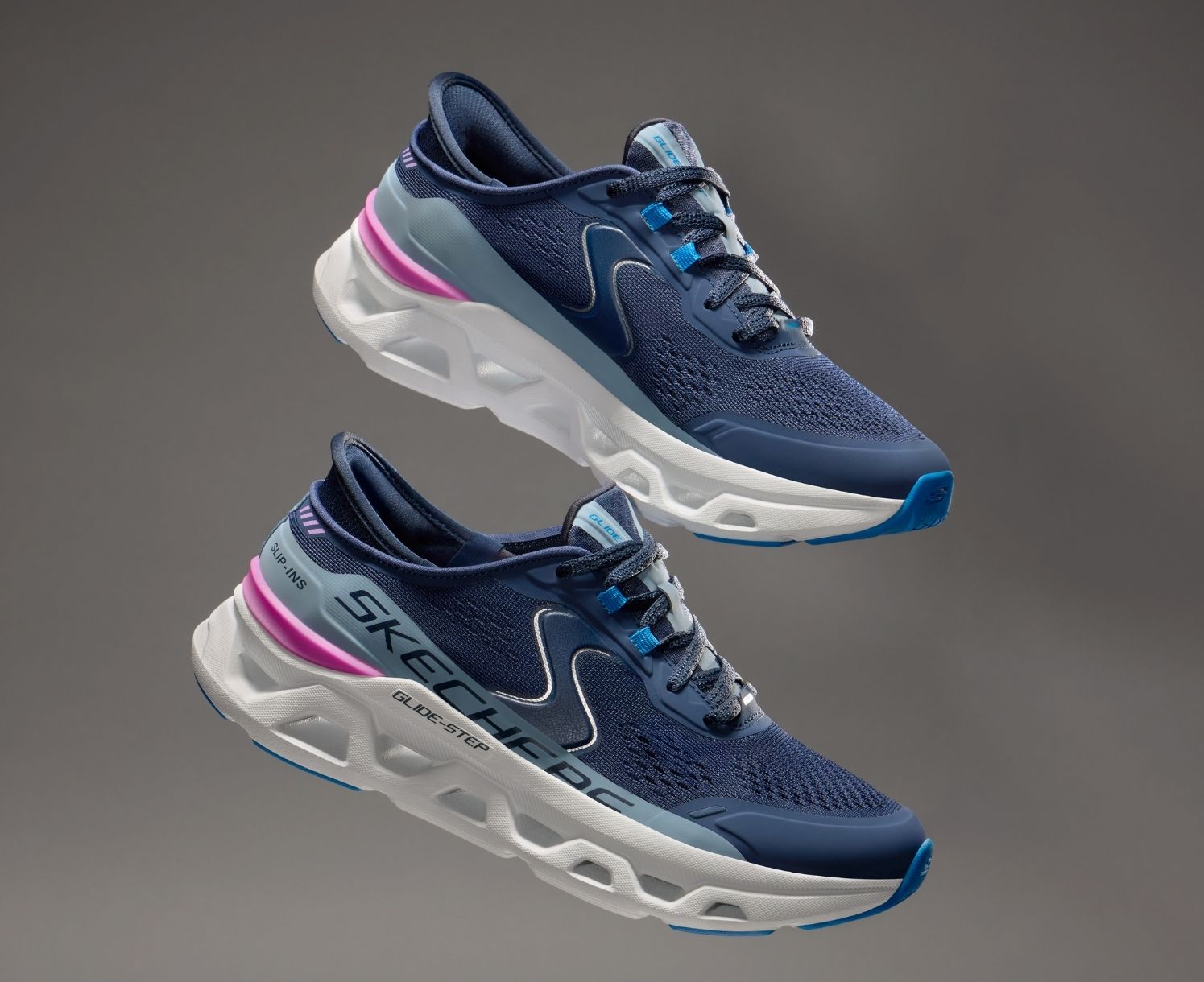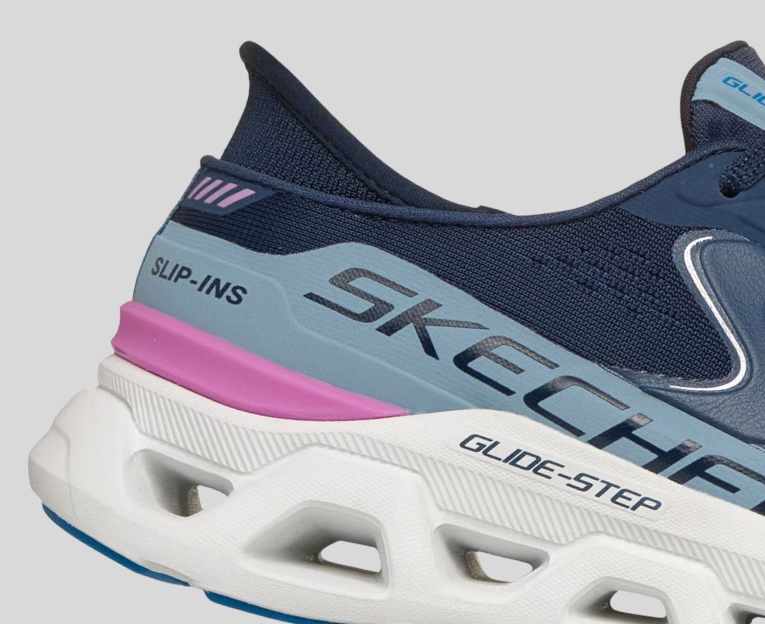 The Skechers Glide-Step® geometric midsole is designed to provide natural momentum with every step, offering a pillow-like soft landing and explosive takeoff.