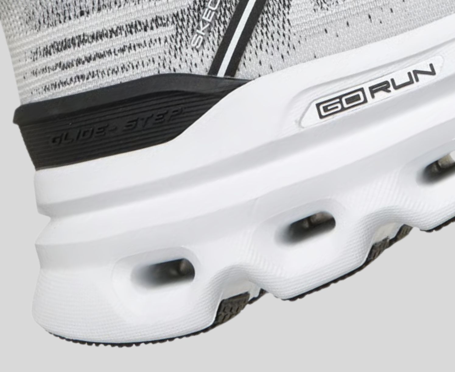 - La technologie Skechers M-Strike® favorise l’efficacité à chaque foulée. Cette configuration de la semelle intercalaire crée des transitions douces du contact au sol au décollage de la pointe du pied.