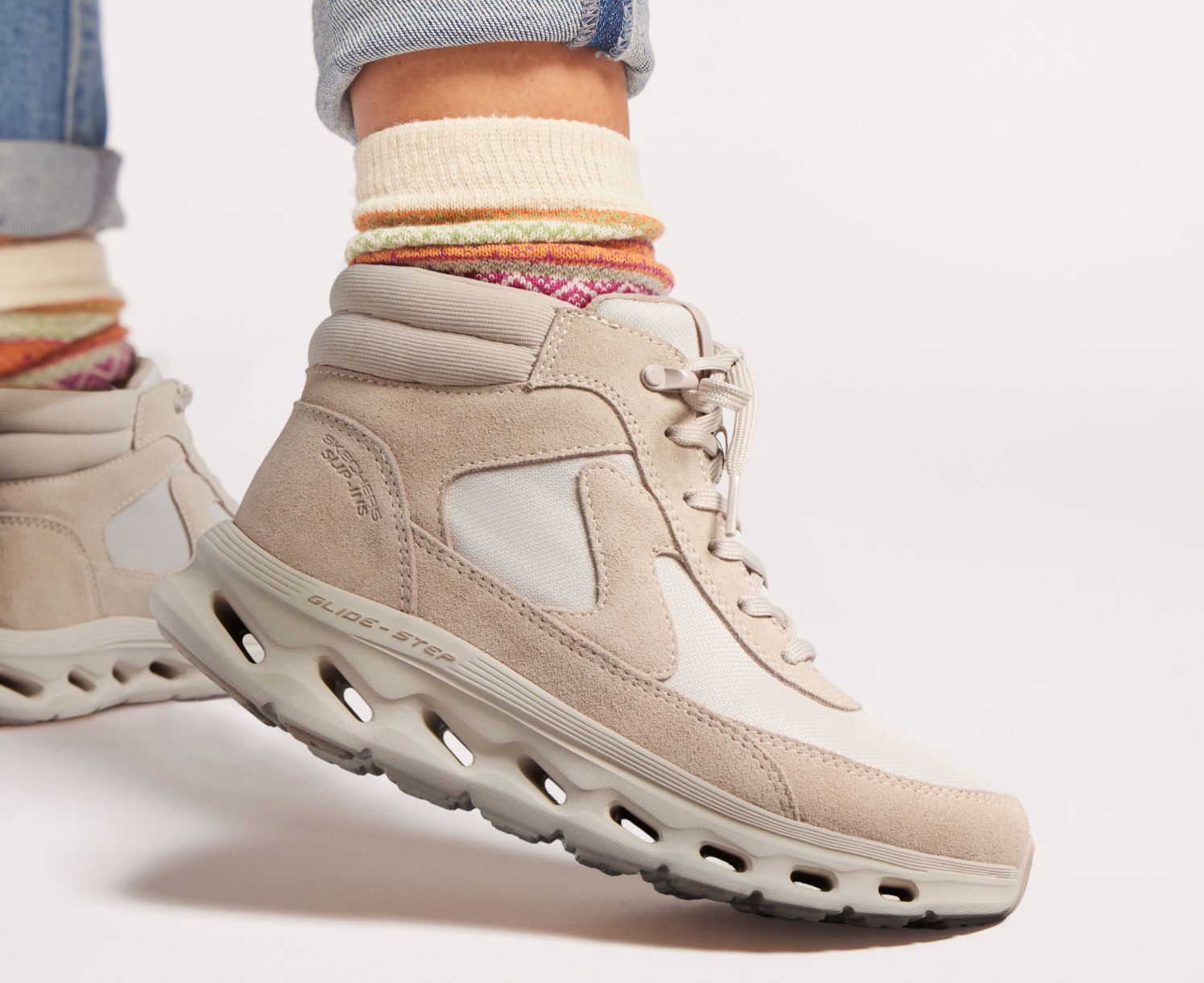 The Skechers Glide-Step® geometric midsole is designed to provide natural momentum with every step, offering a pillow-like soft landing and explosive takeoff.