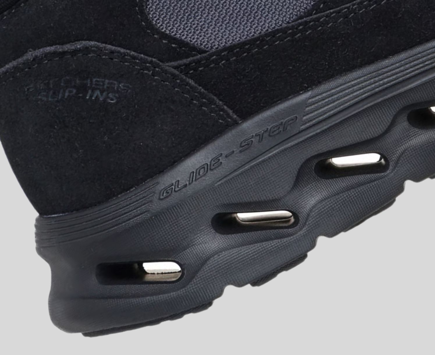 The Skechers Glide-Step® geometric midsole is designed to provide natural momentum with every step, offering a pillow-like soft landing and explosive takeoff.